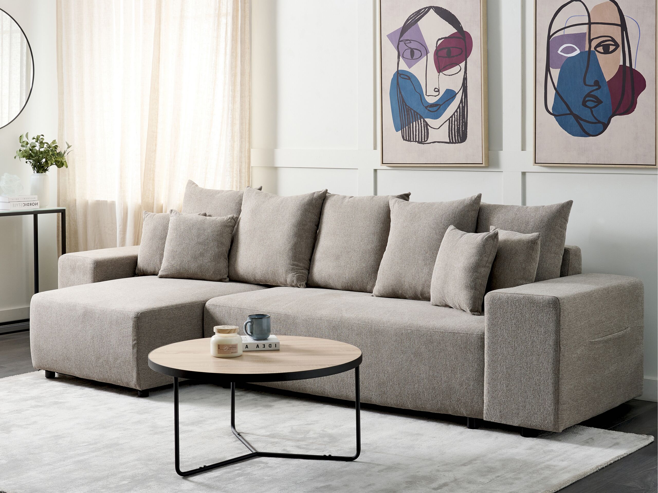 Beliani-LUSPA-Hoekbank met opbergruimte-Taupe-Rechtszijdig-Stof