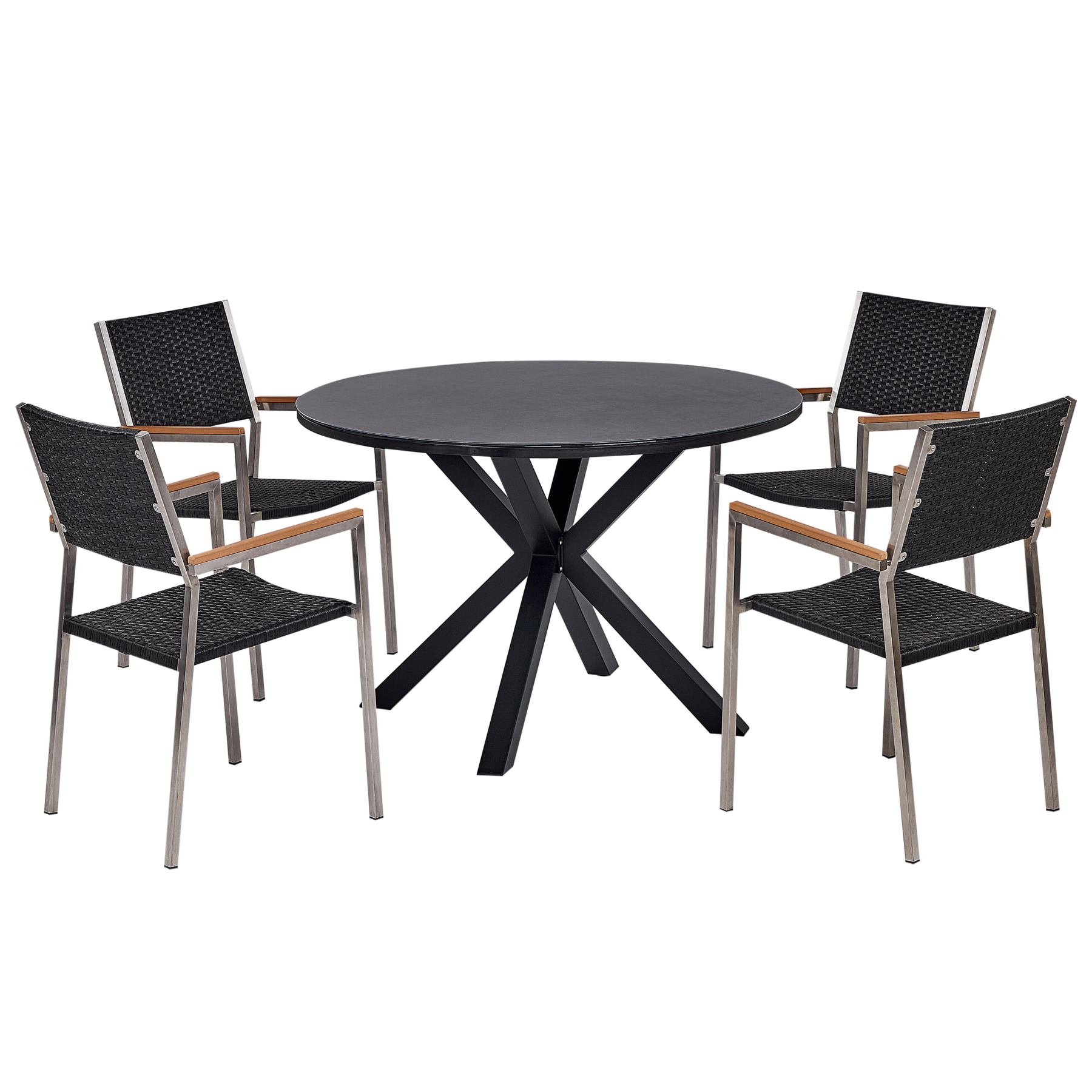 Beliani-MALETTO|GROSSETO-Tuinset 4-zits-Zwart-Aluminium|Rotan|Glas