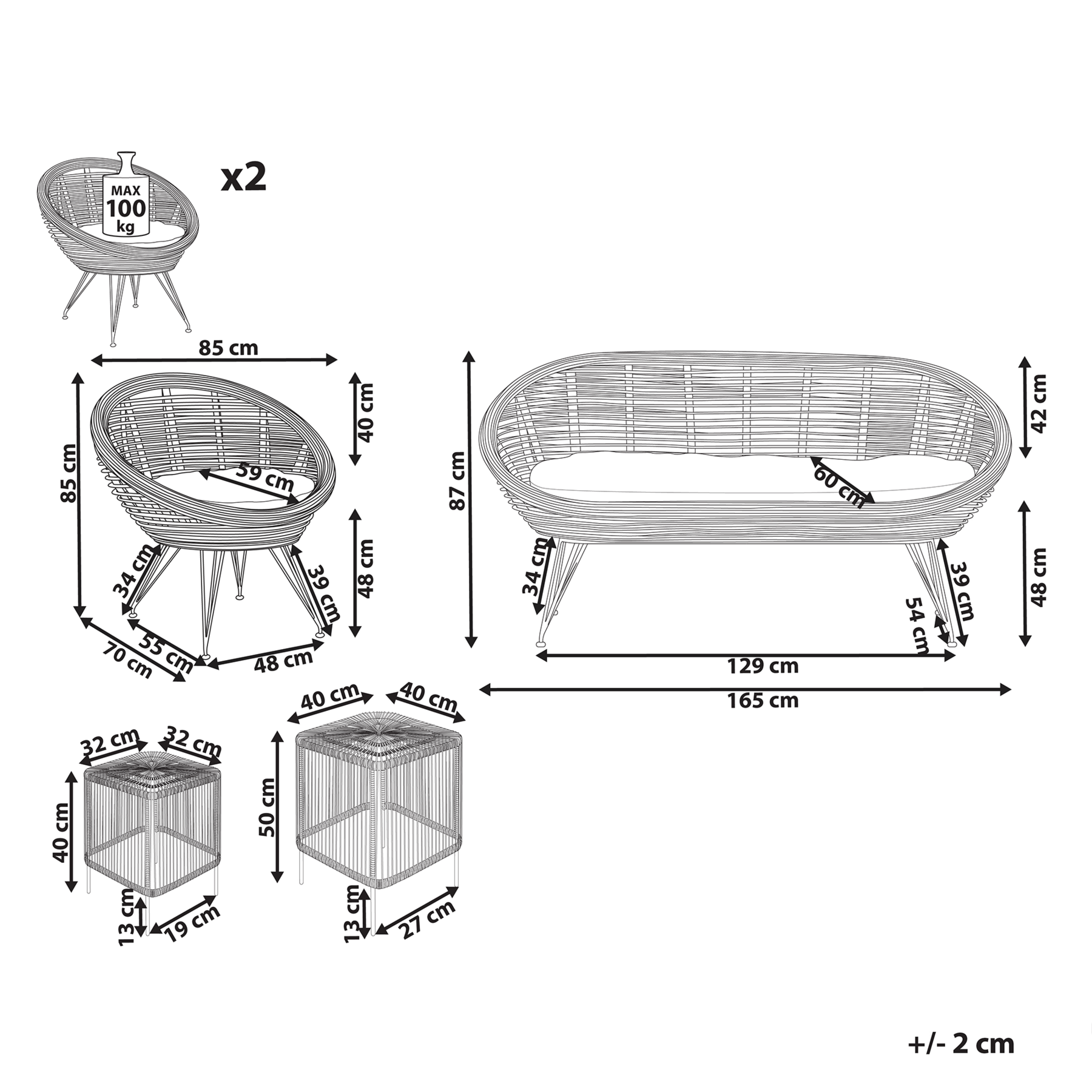 Beliani-MARATEA| CESENATICO-Banken set met salontafel-Lichtbeige-Rotan