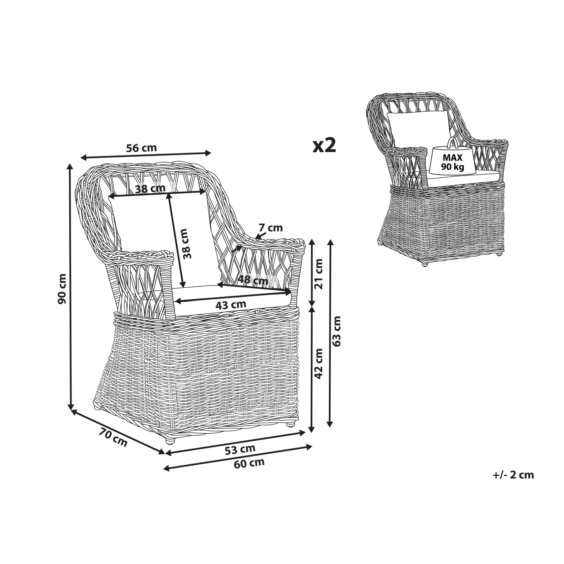 | Maximale draagkracht | 90 kg |