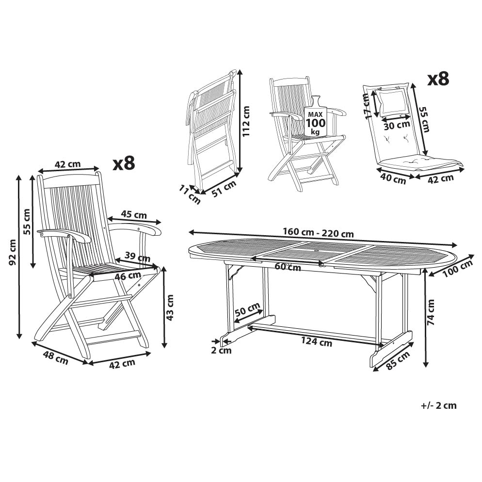 Beliani - MAUI II - Tuinset voor 8 - Lichthout|Wit - Acaciahout