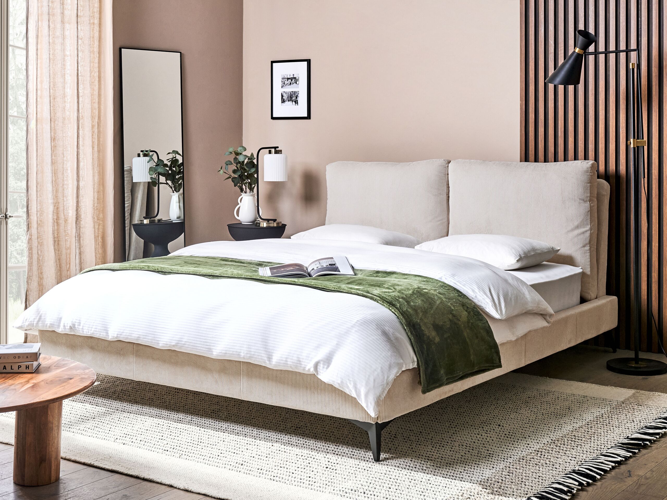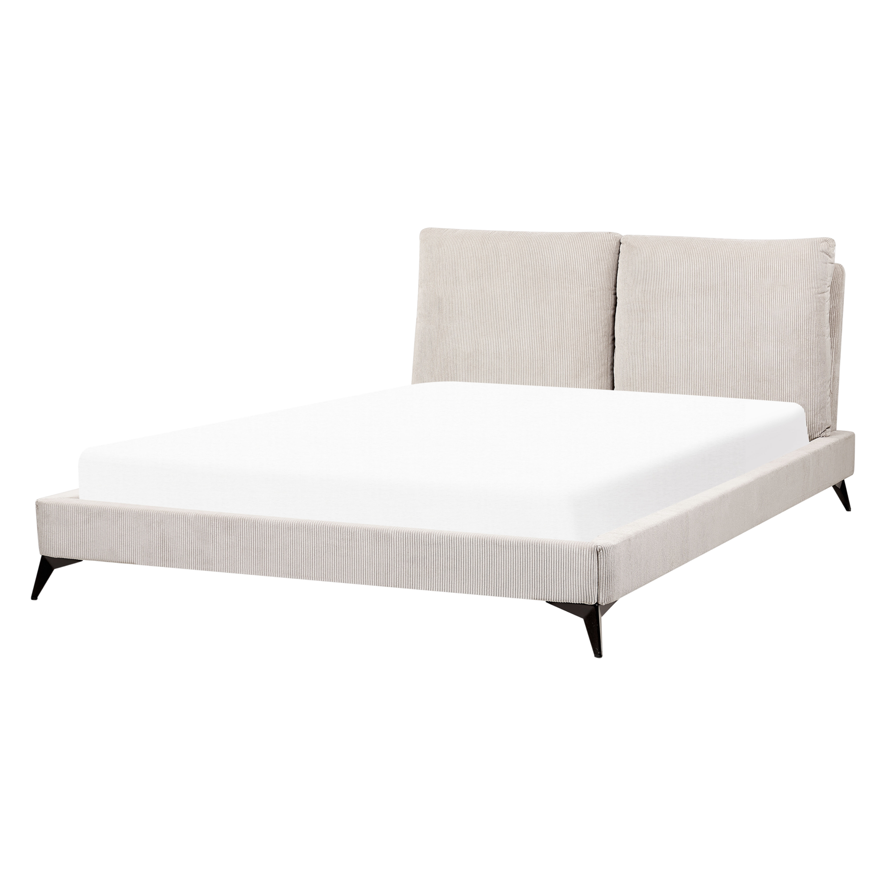 Beliani-MELLE -Tweepersoonsbed-Lichtbeige-160 x 200 cm-Corduroy