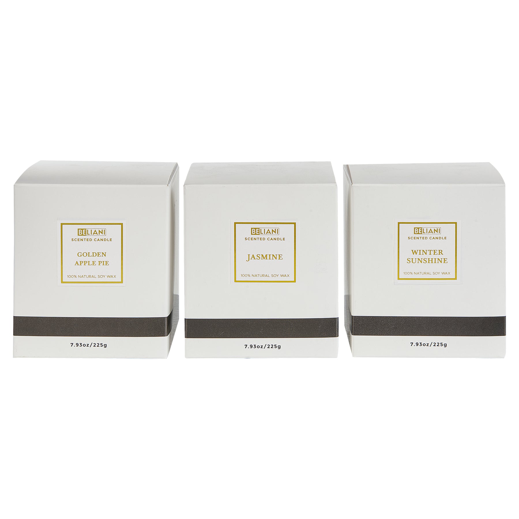 Beliani-METALLIC GLAMOUR-Geurkaars set-Appel|Jasmijn|Winterzon-Soja wax