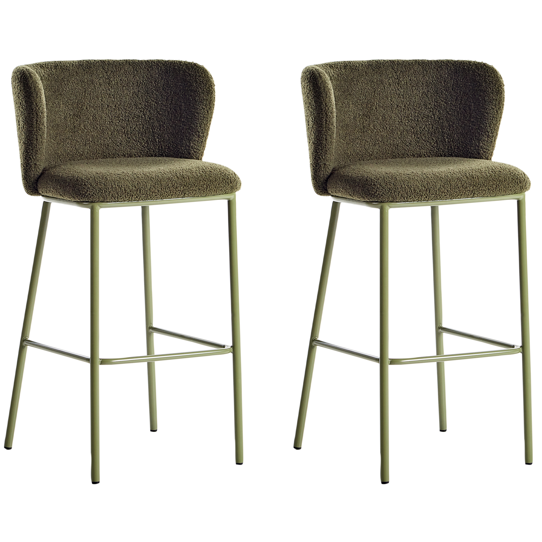 Beliani - MINA II - Barkruk set van 2 - Donkergroen - Bouclé