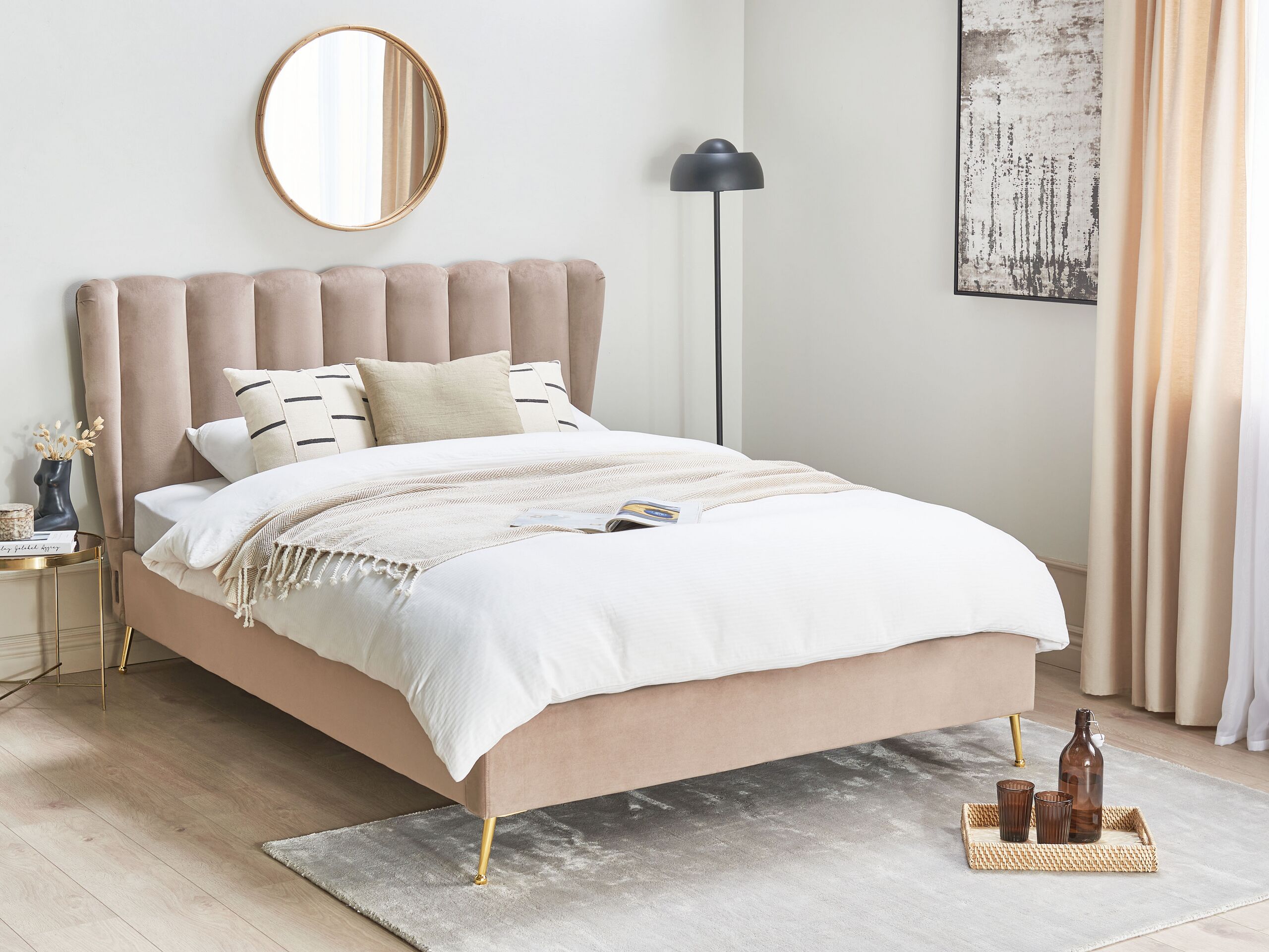 Beliani - MIRIBEL - Tweepersoonsbed - Taupe - 140x200 - Fluweel