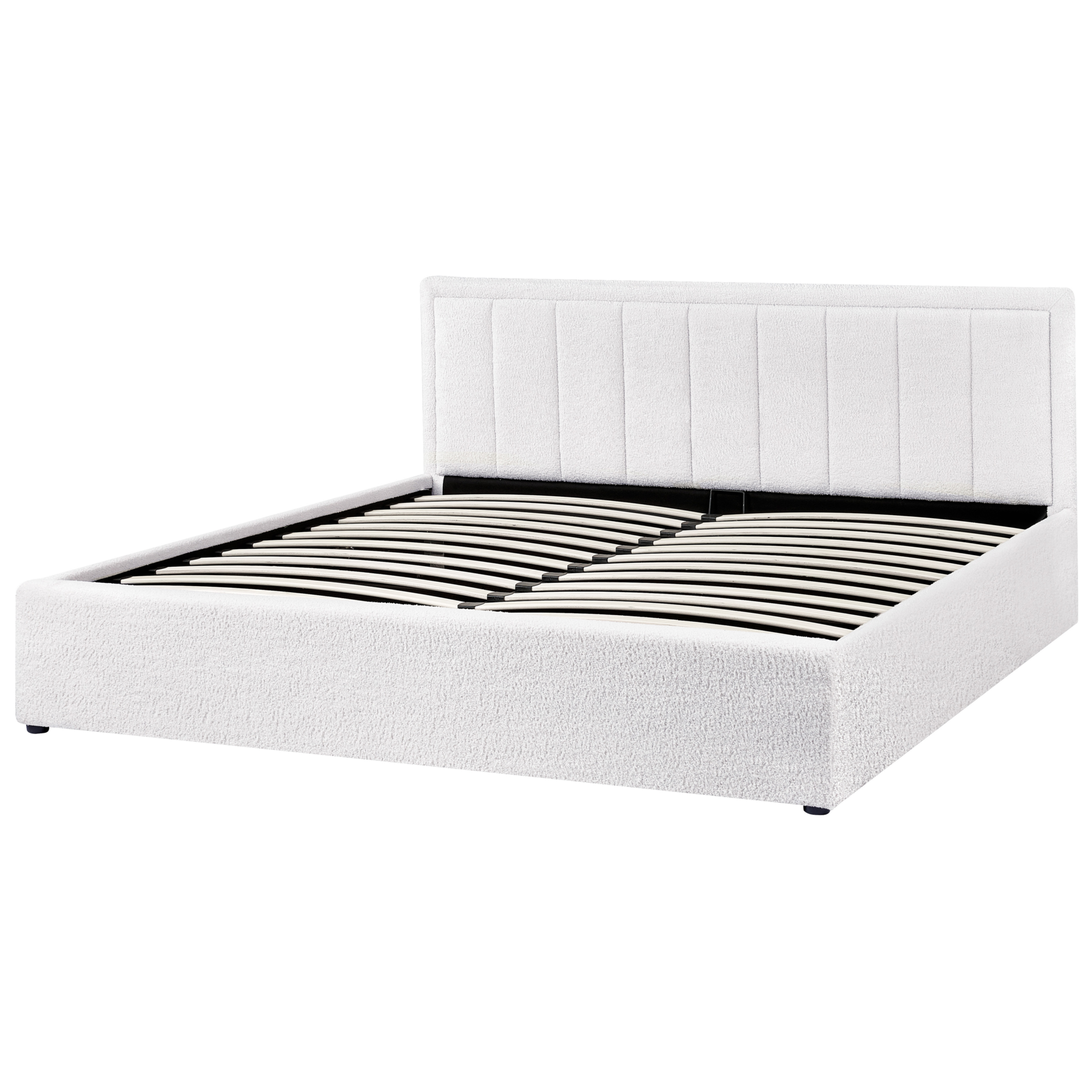 Beliani-MONTLAUR-Bed met opbergruimte-Wit-180 x 200 cm-Bouclé