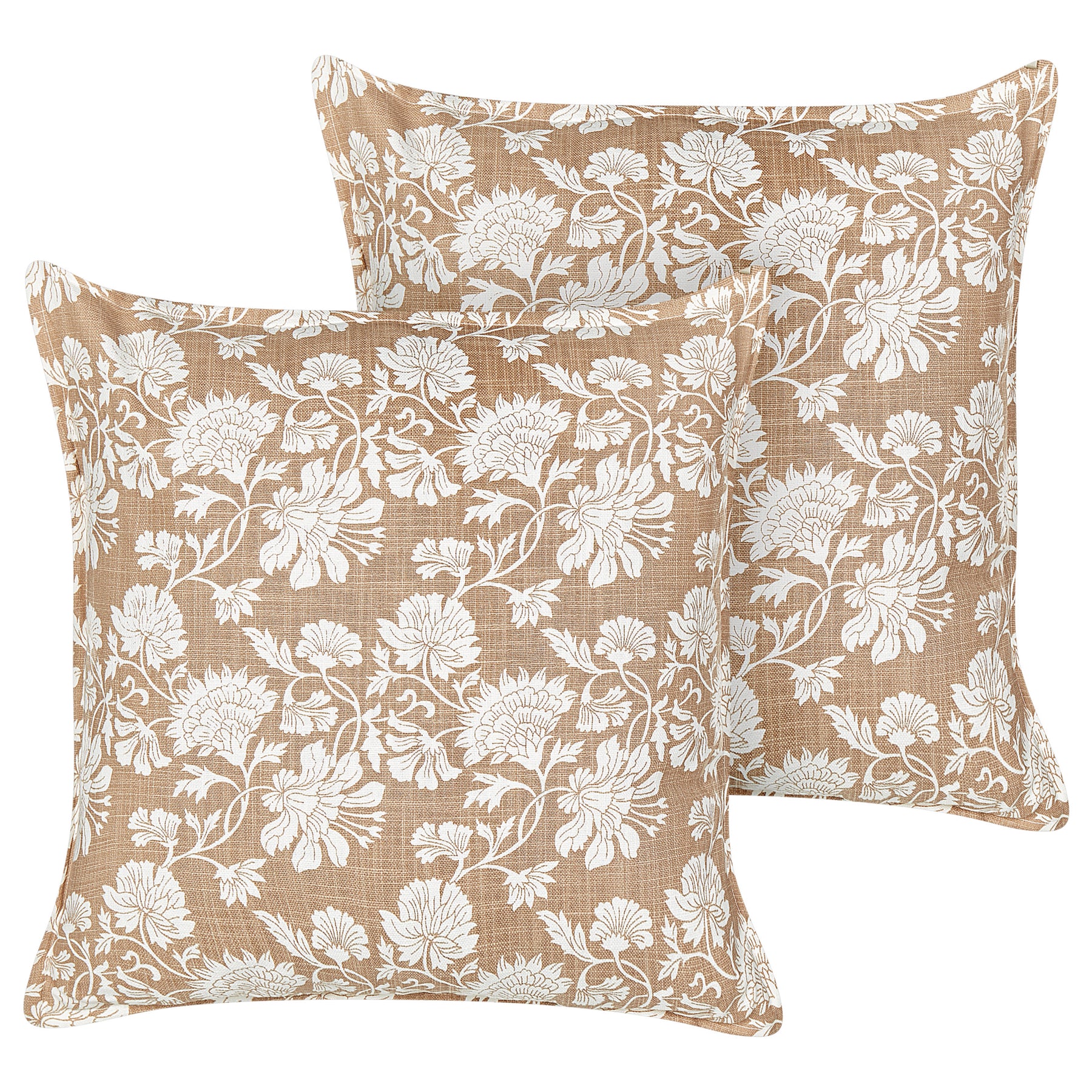 Beliani-NOTELEA -Sierkussen set van 2-Wit|Beige-45 x 45 cm-Katoen