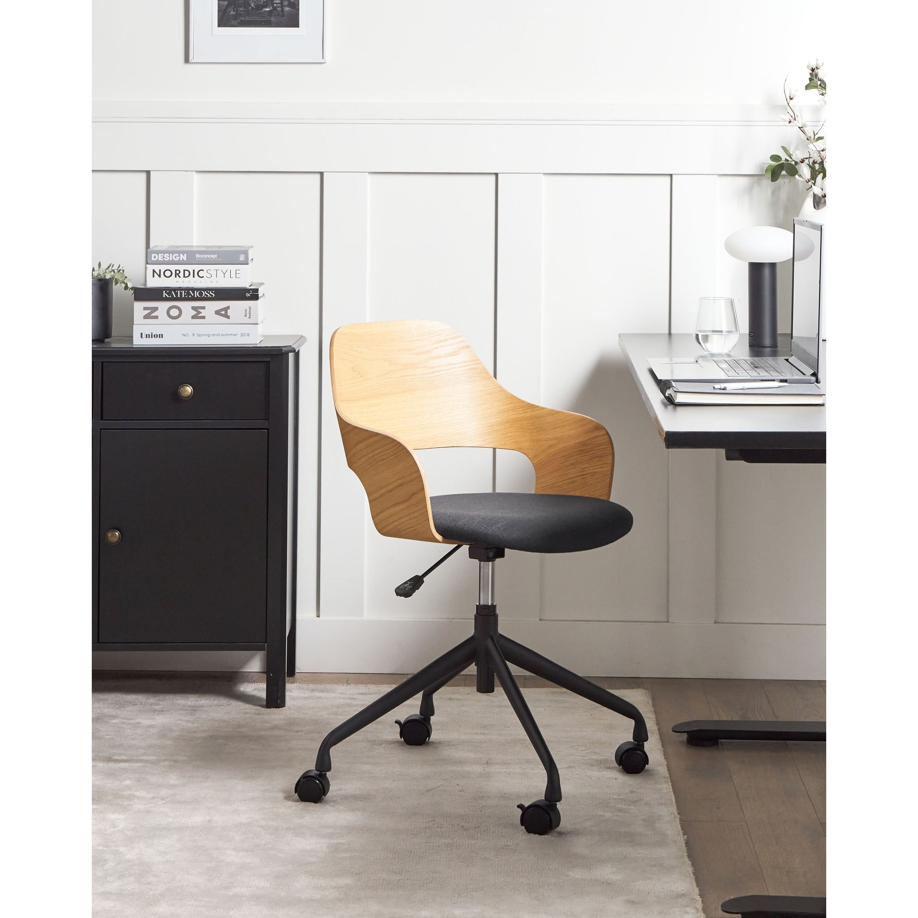 Beliani - NOVATO - Bureaustoel - Lichthout|Zwart - Linnen