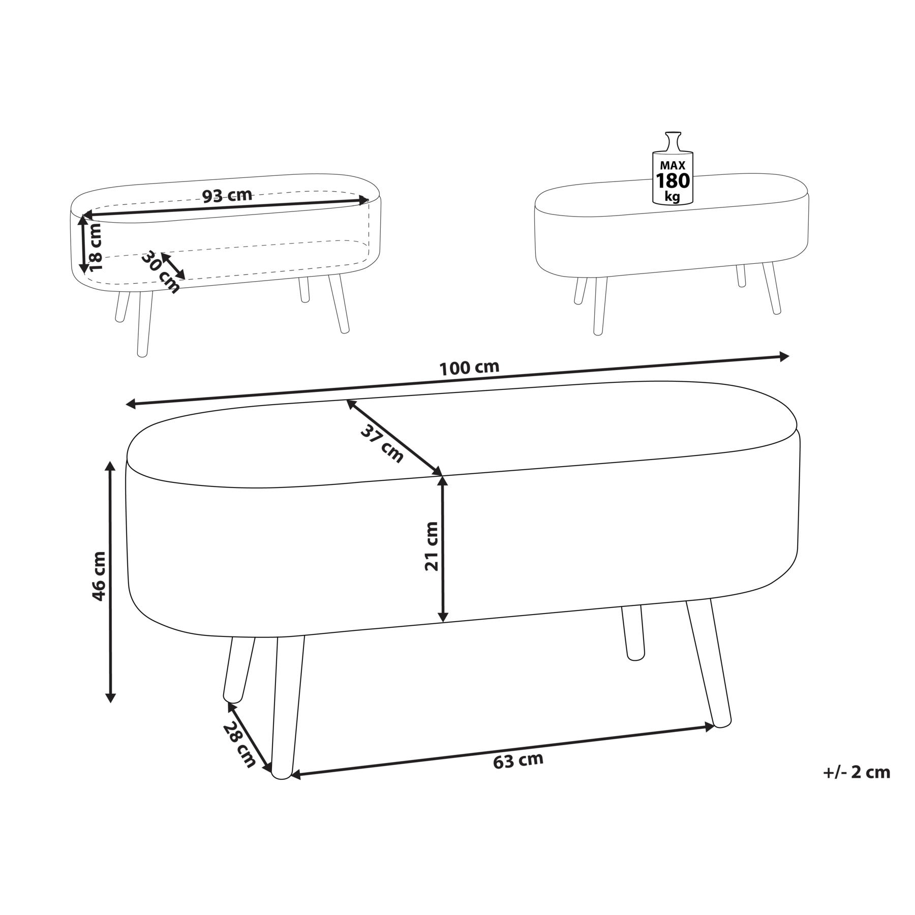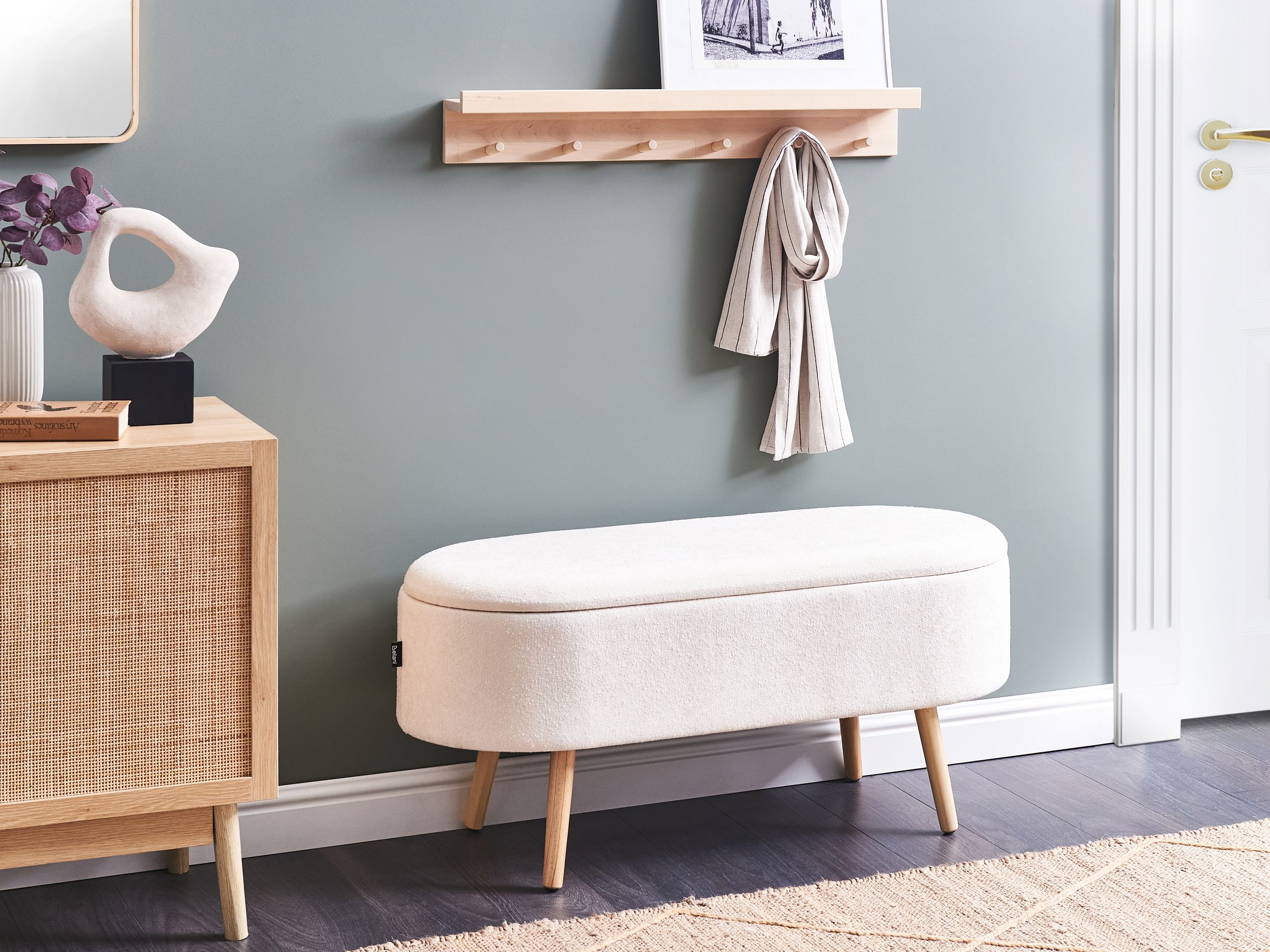 Beliani-OKLAHOMA-Bankje met opbergruimte-Gebroken wit-Polyester
