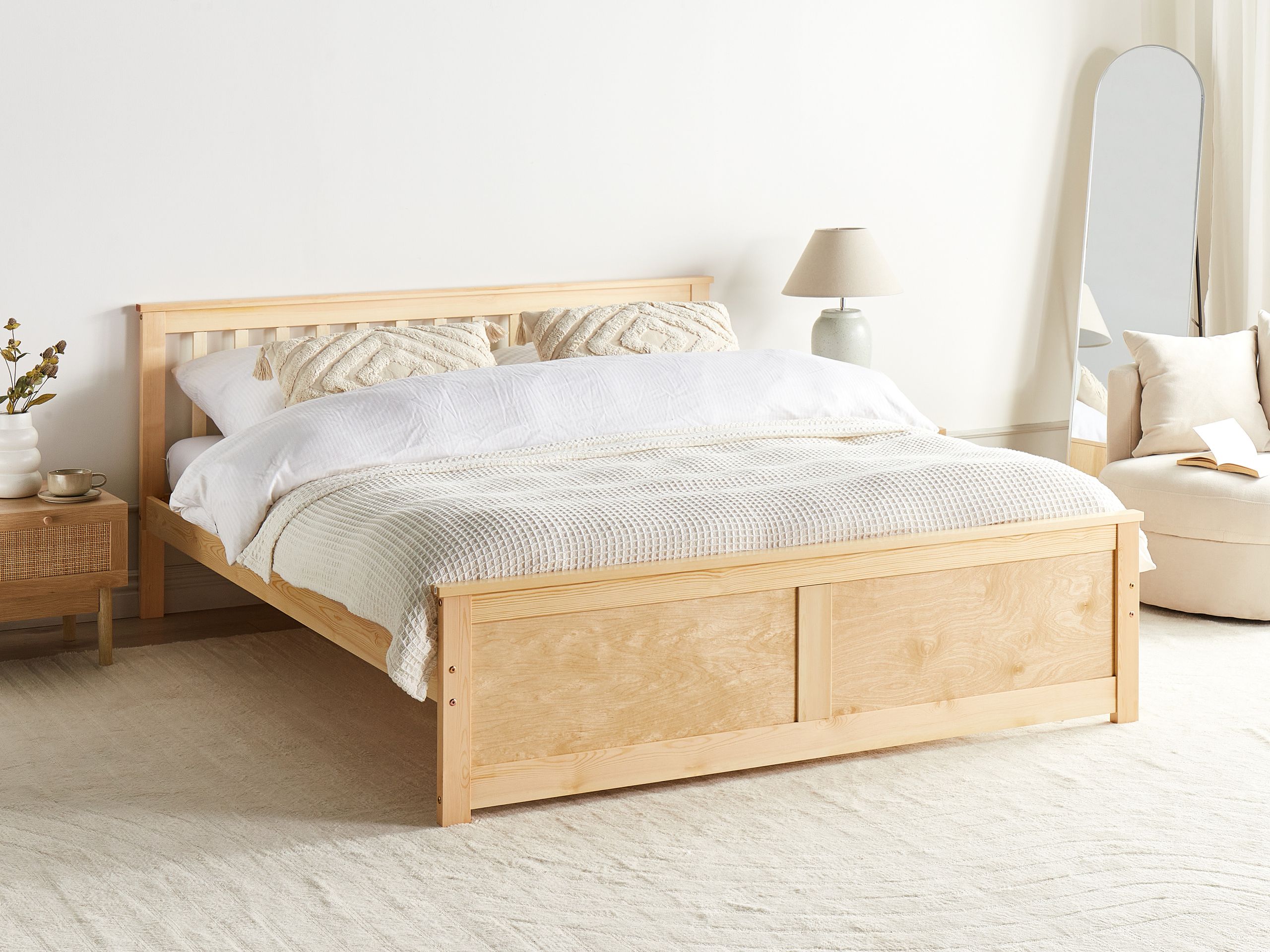 Beliani-OLENDON-Tweepersoonsbed-Lichtbruin-180 x 200 cm-Dennenhout