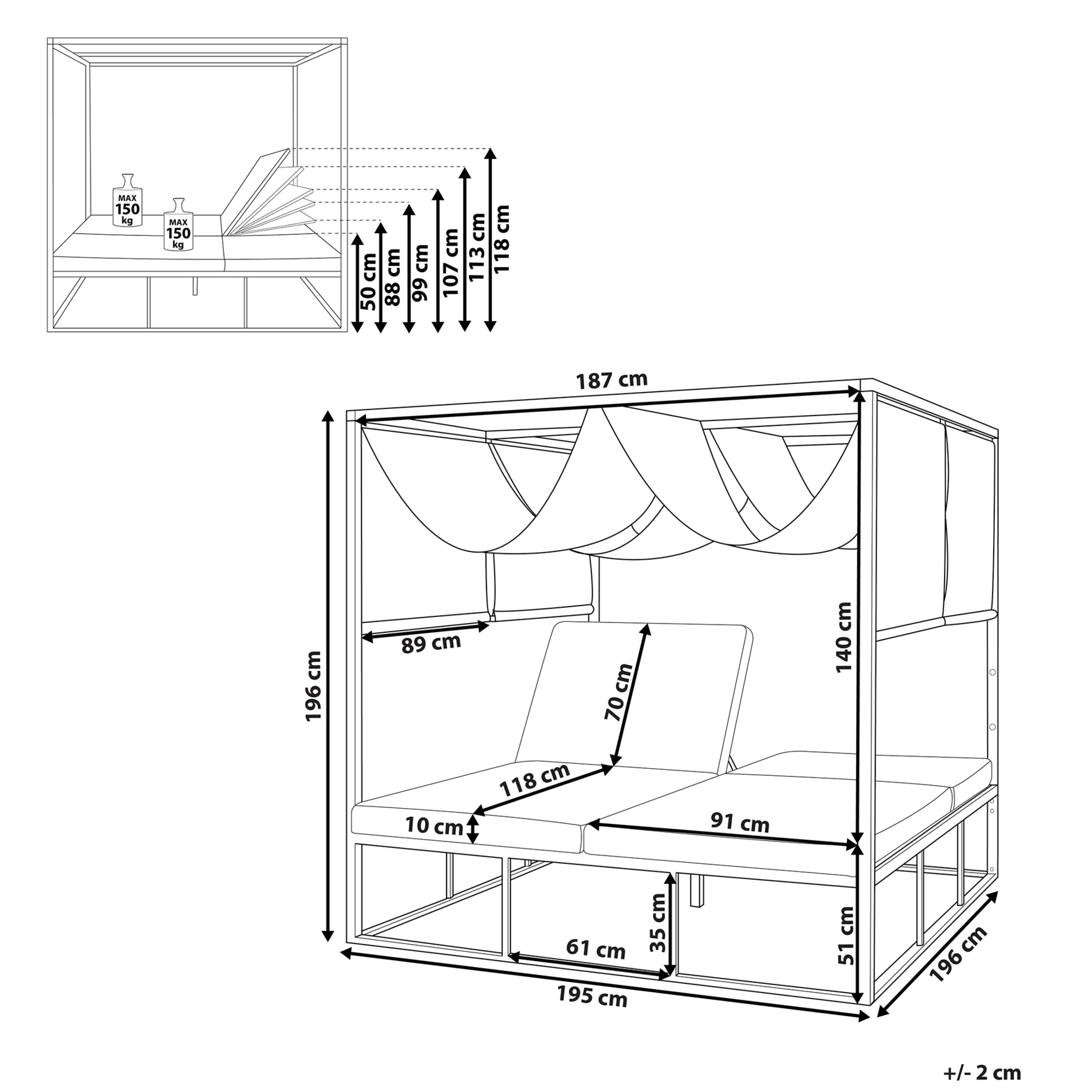 | Zitdiepte | 196 cm |