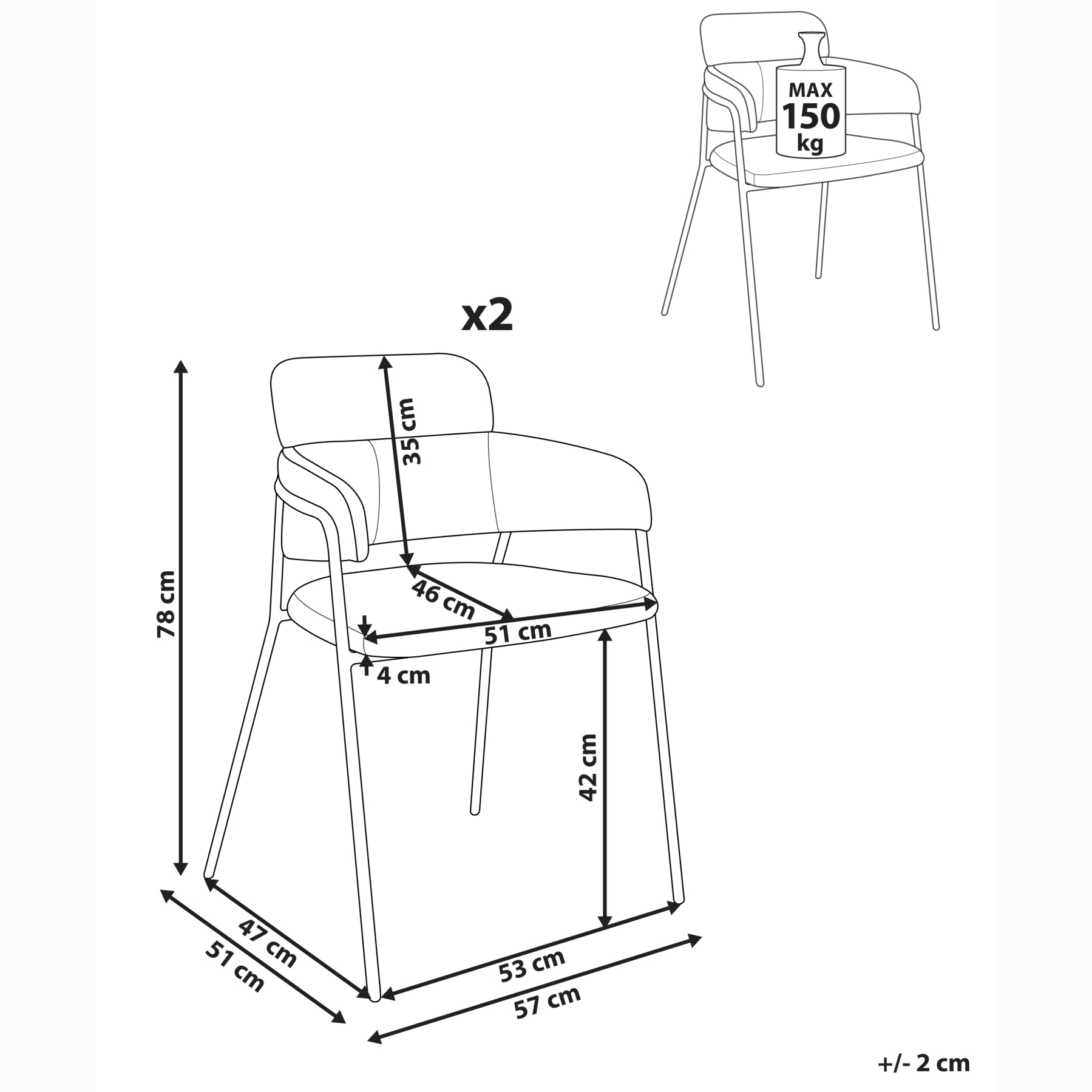 | Maximale draagkracht | 150 kg |