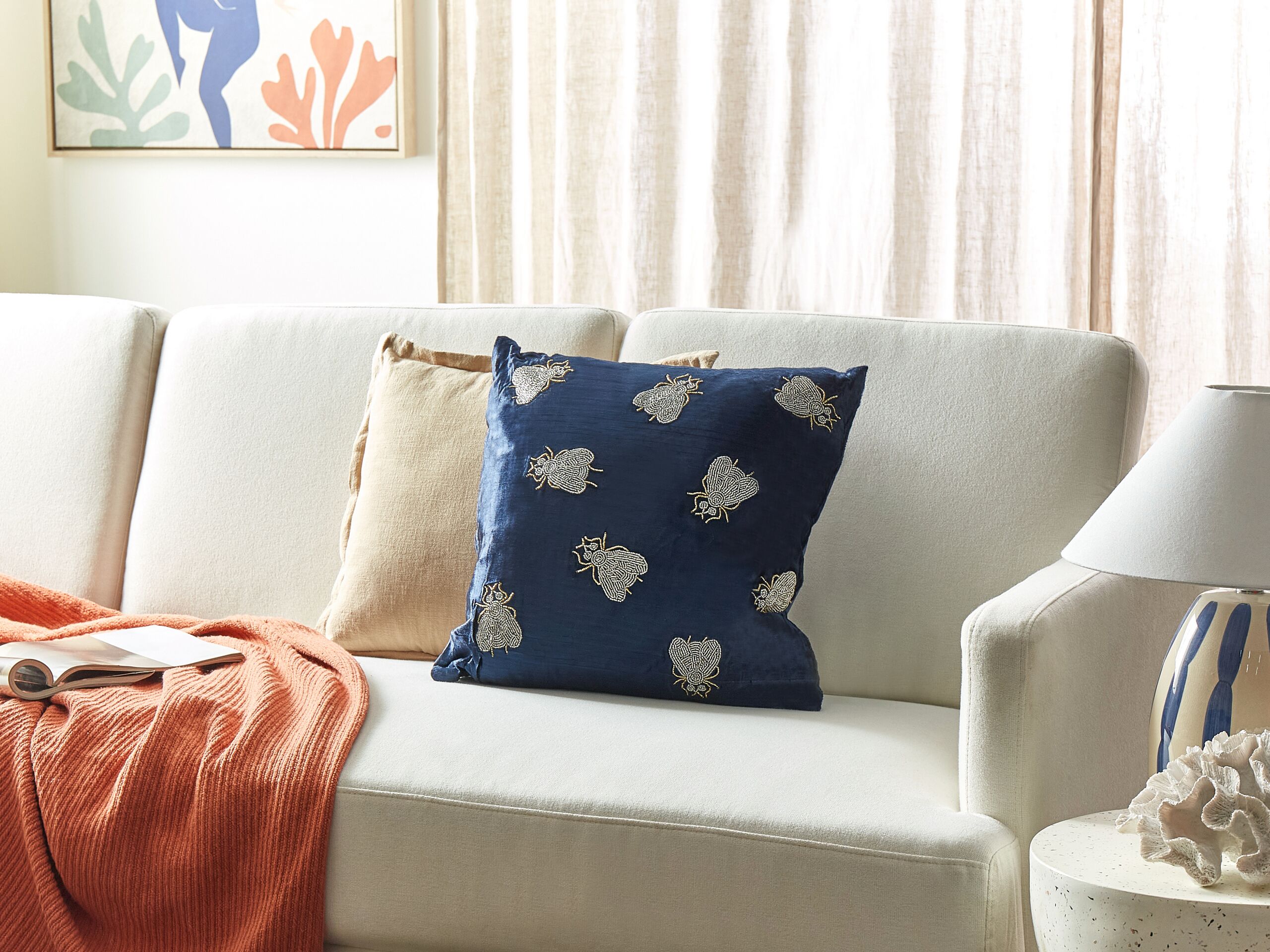 Beliani-PENTAS-Sierkussen-Marineblauw|Zilver- 45 x 45 cm-Fluweel