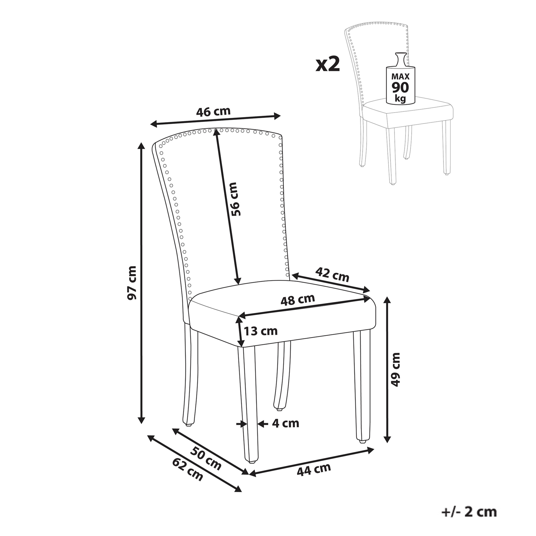 | Maximale draagkracht | 90 kg |