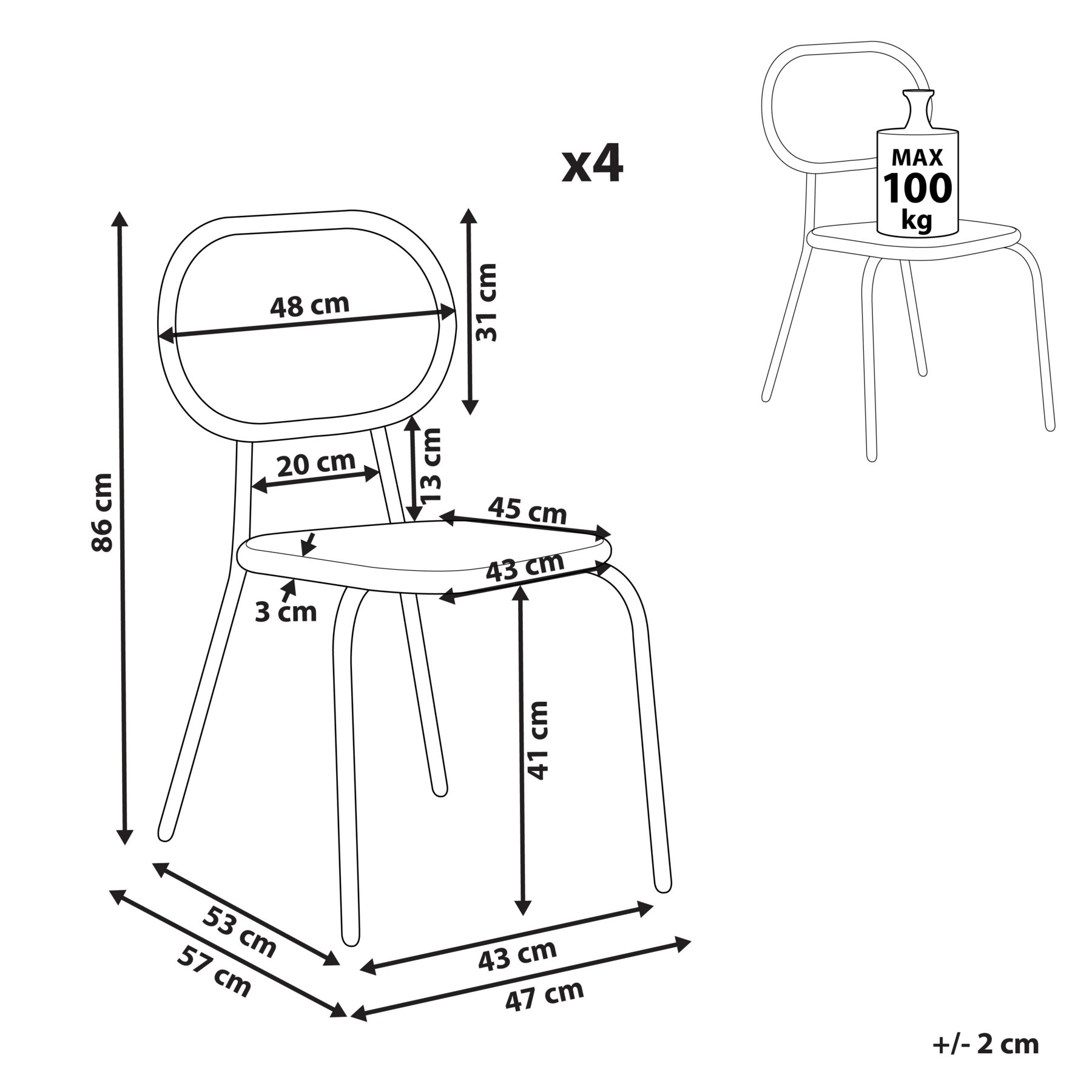 | Maximale draagkracht | 100 kg |