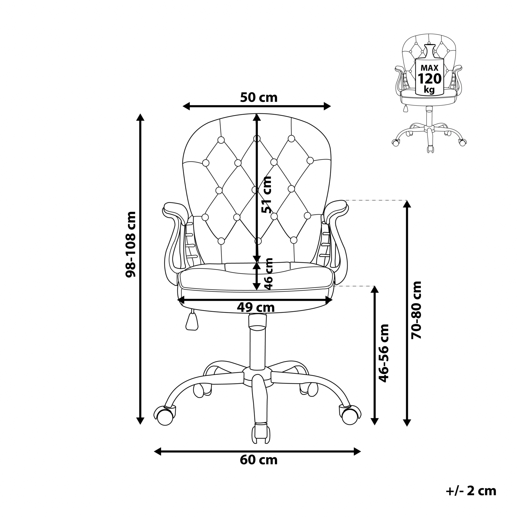 De hoogte van de zitting, gemeten vanaf de vloer. De ideale zithoogte bevindt zich tussen de 40 en 46 cm. Je zit het lekkerst met een ruimte van ongeveer 20 cm, tussen de stoelzitting en de onderkant van het tafelblad.