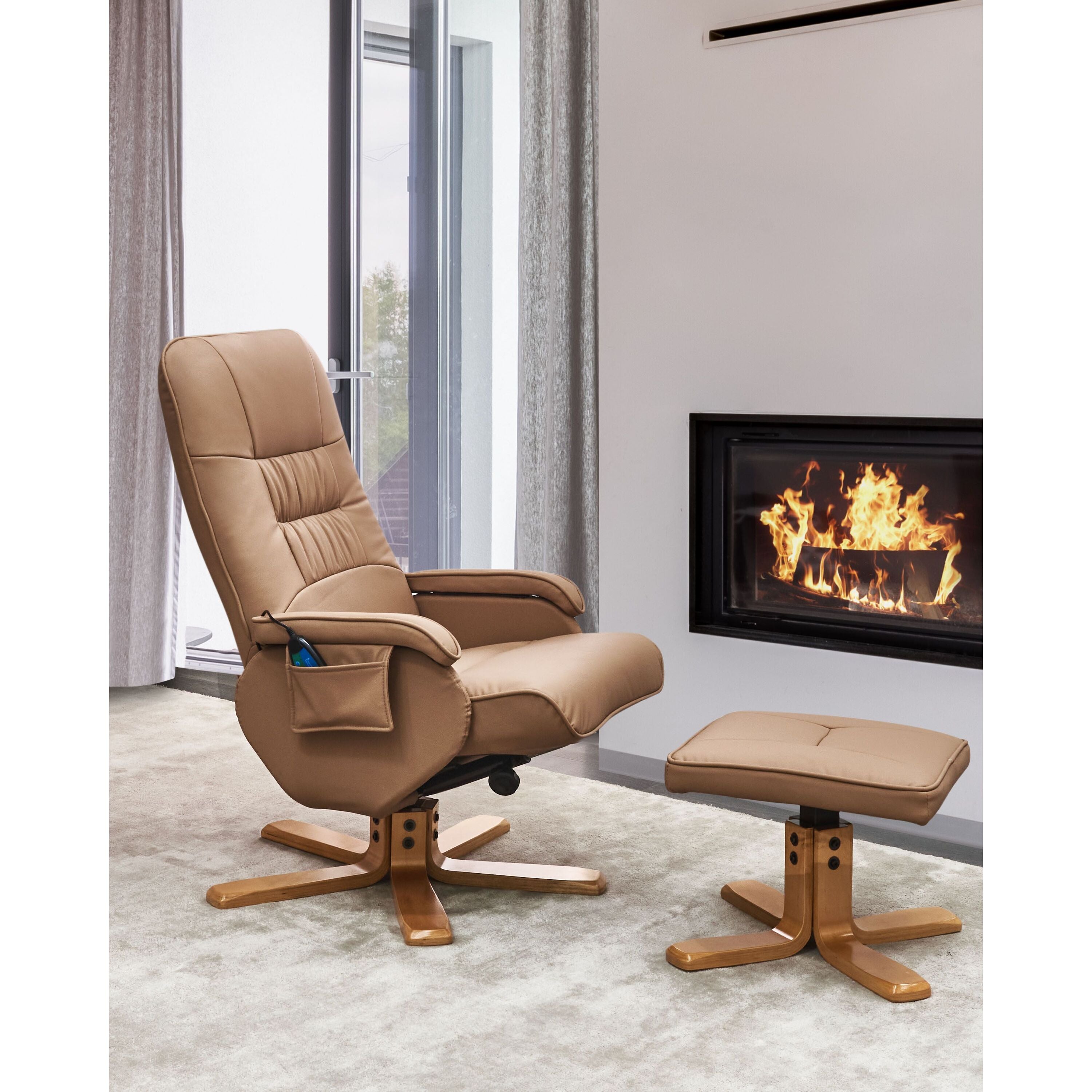Beliani-RELAXPRO-Relaxfauteuil met voetenbank-Lichtbruin-Kunstleer