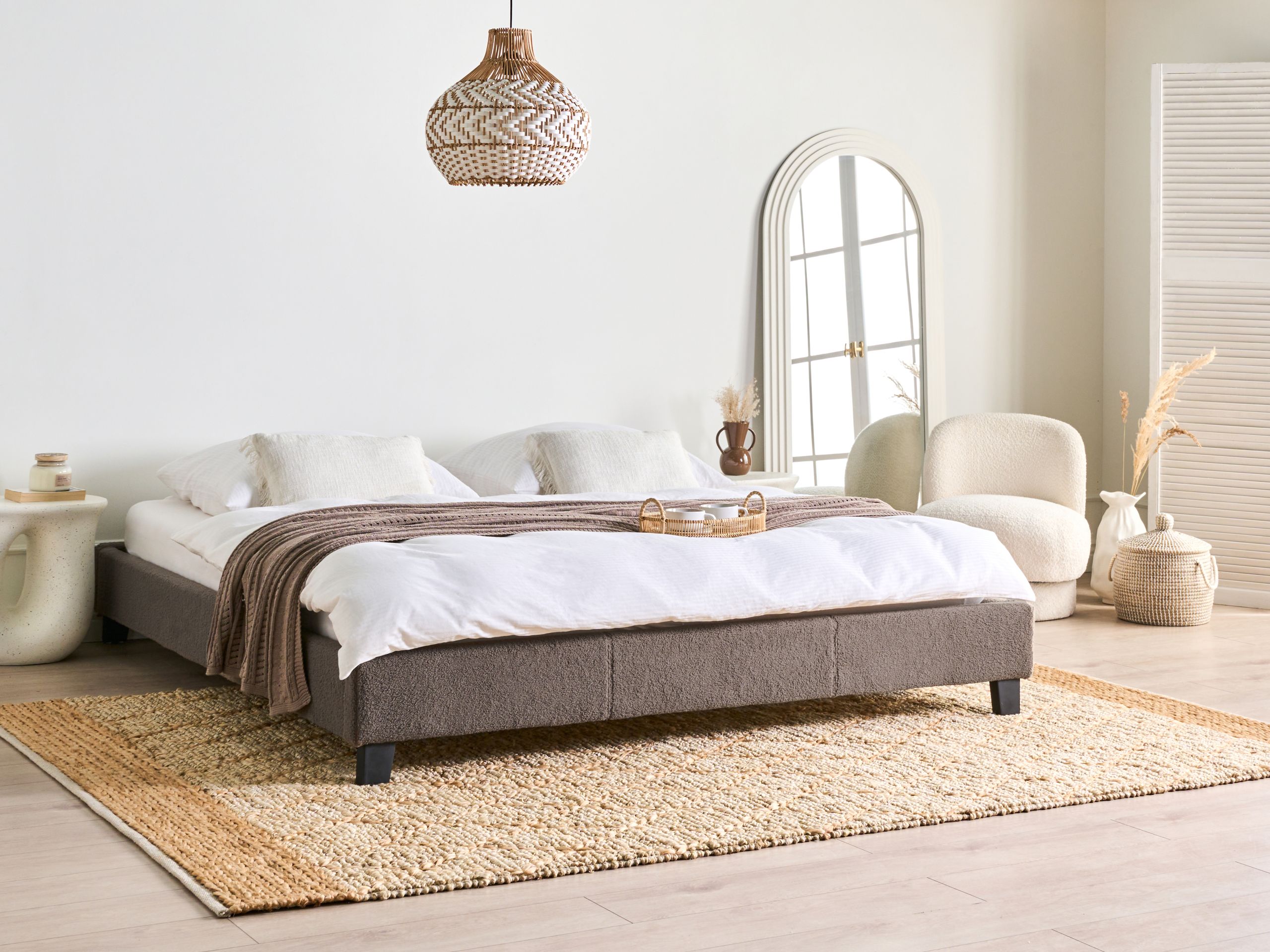 Beliani - ROANNE - Tweepersoonsbed - Taupe - 180 x 200 cm - Bouclé