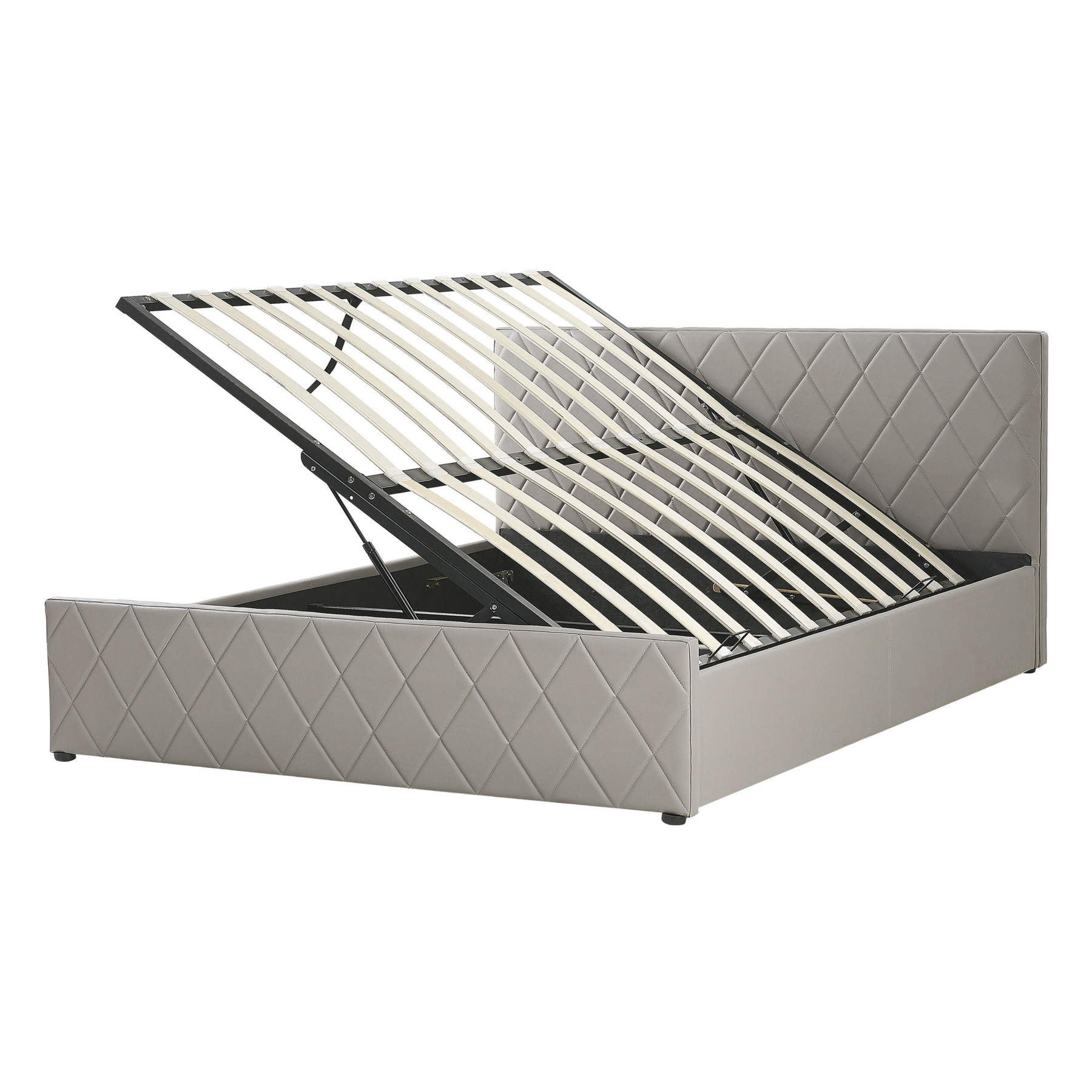 Beliani-ROCHEFORT-Bed met opbergruimte-Grijs-140 x 200 cm-Kunstleer