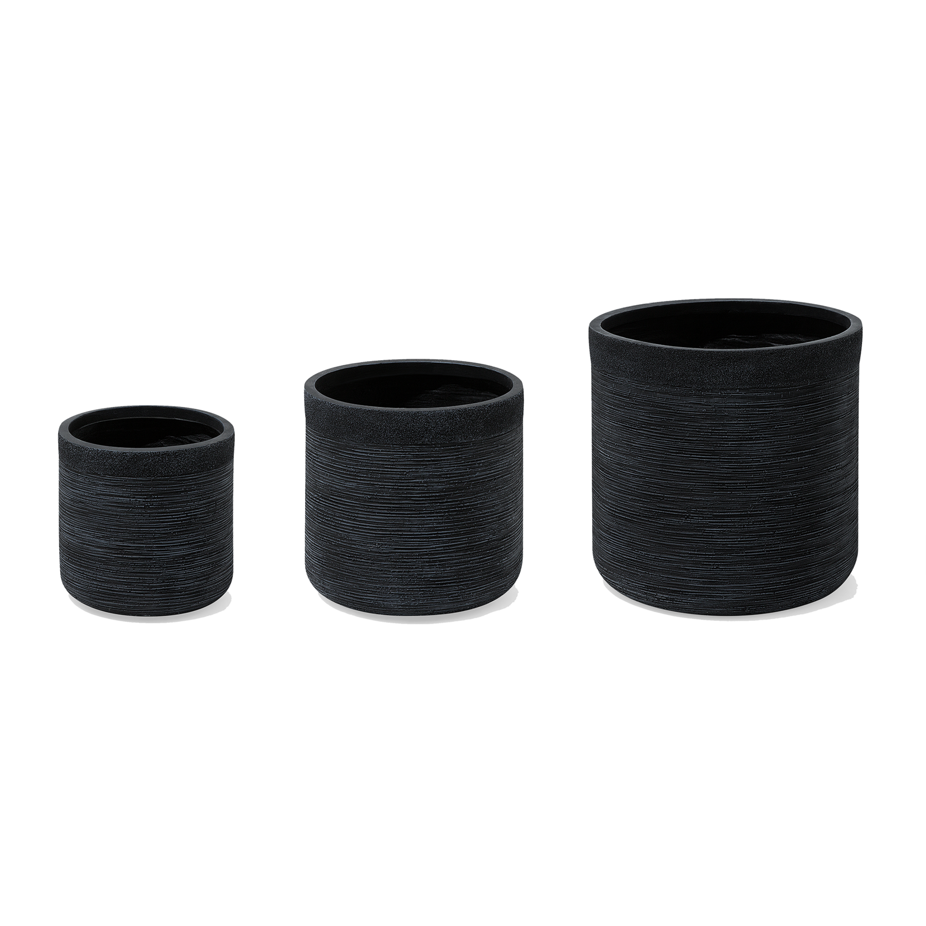 Minimalistisch ontwerp in de mooiste vorm! Zet prachtige accenten op het terras, balkon of in de tuin met deze moderne ronde bloempotten in zwart. De plantenbakken in drie verschillende maten zijn flexibel voor gebruik binnenshuis en voor gebruik bu