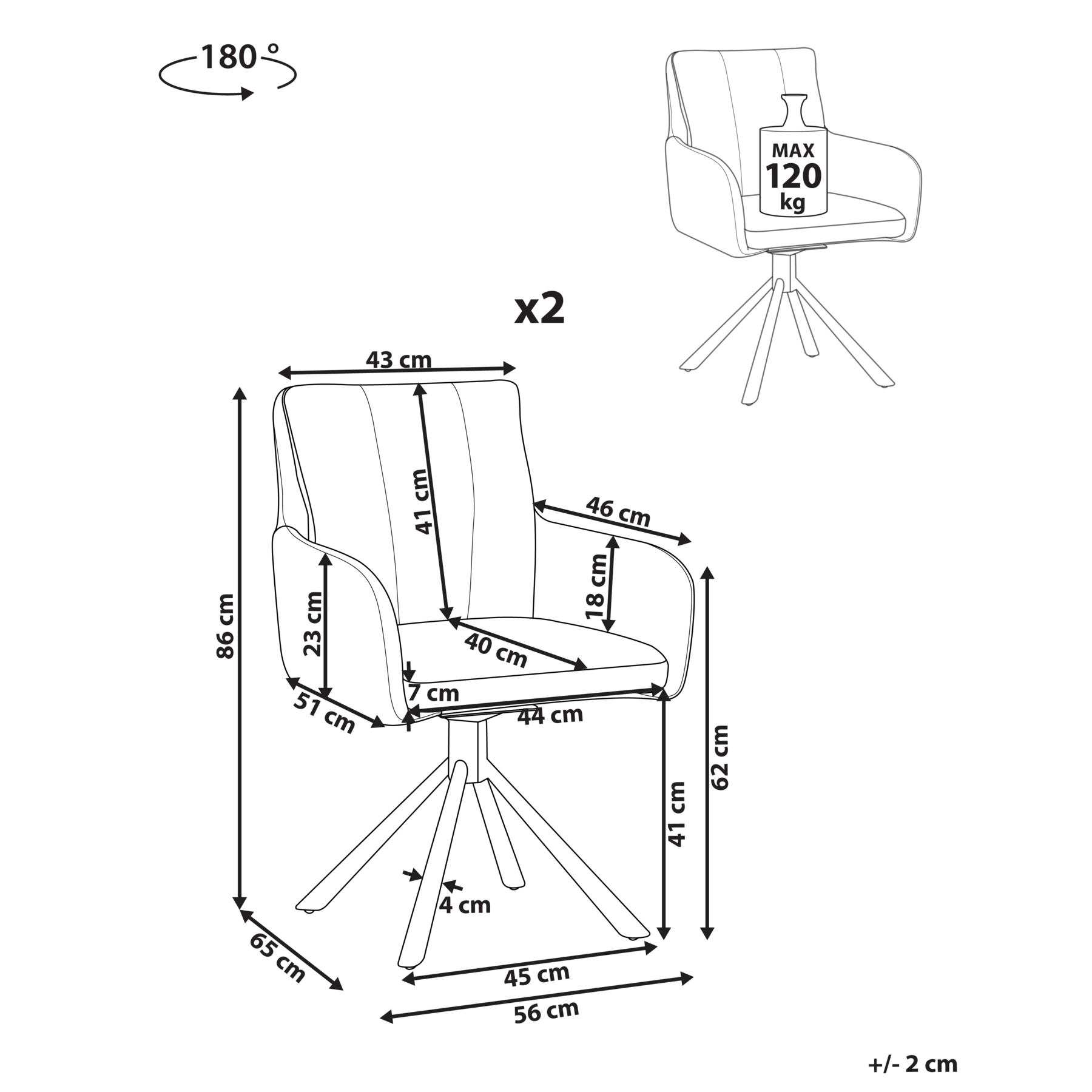 | Maximale draagkracht | 120 kg |