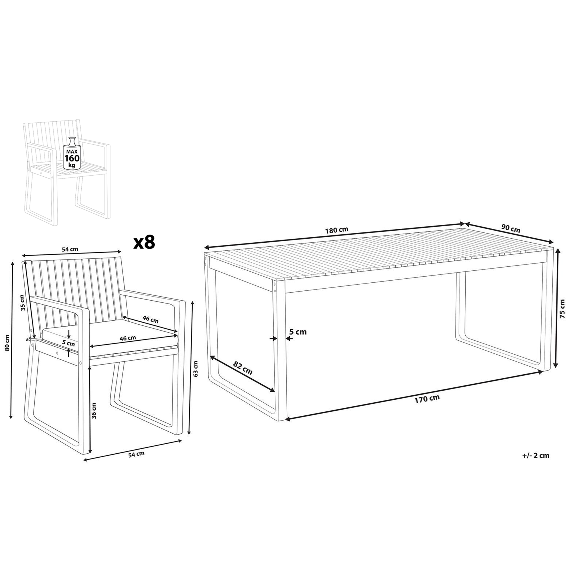 Beliani-SASSARI L-Tuinset voor 8-Lichte houtkleur|Groen|Wit-Acaciahout