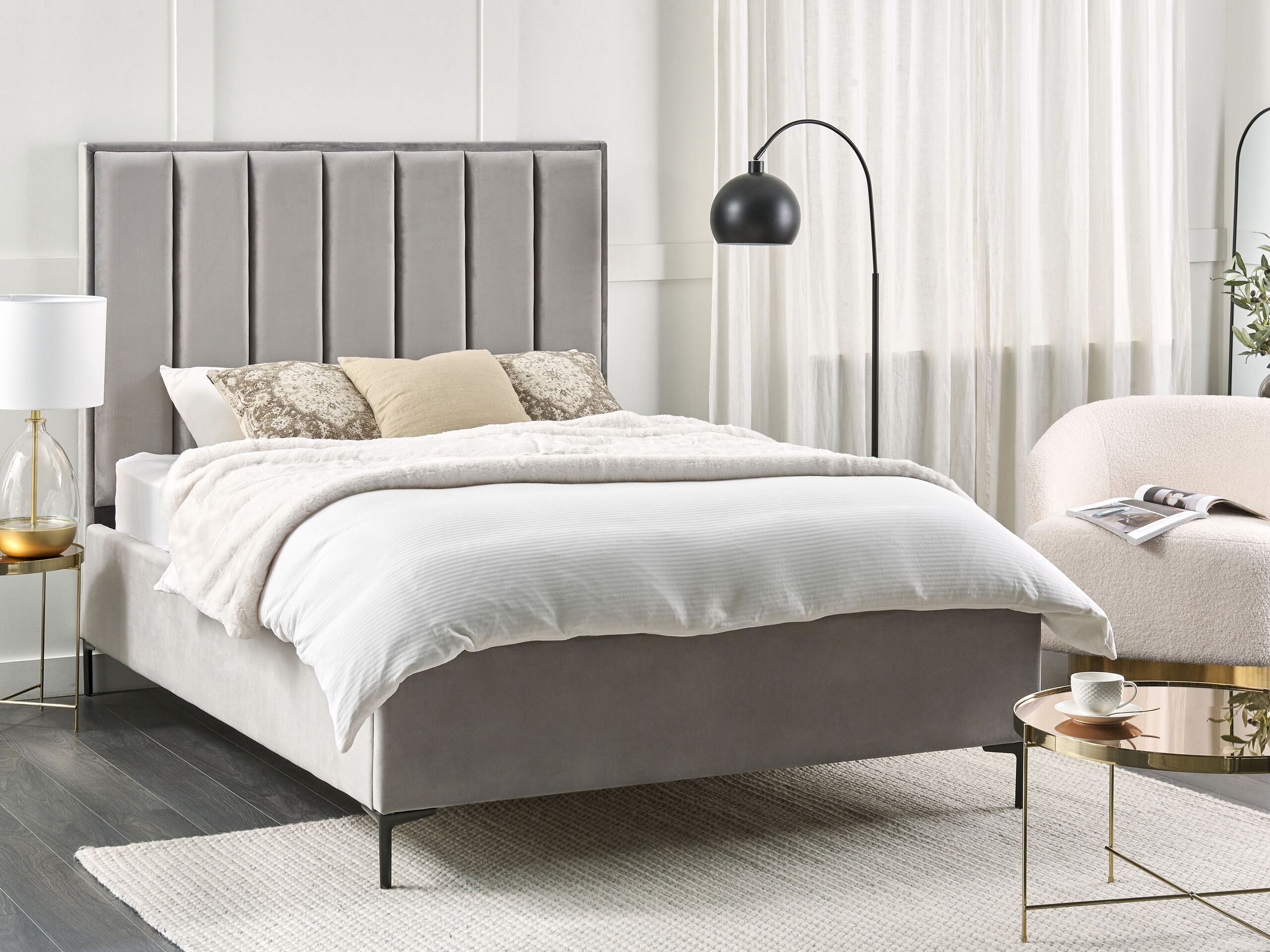 Beliani-SEZANNE -Bed met opbergruimte-Lichtgrijs-140 x 200 cm-Fluweel