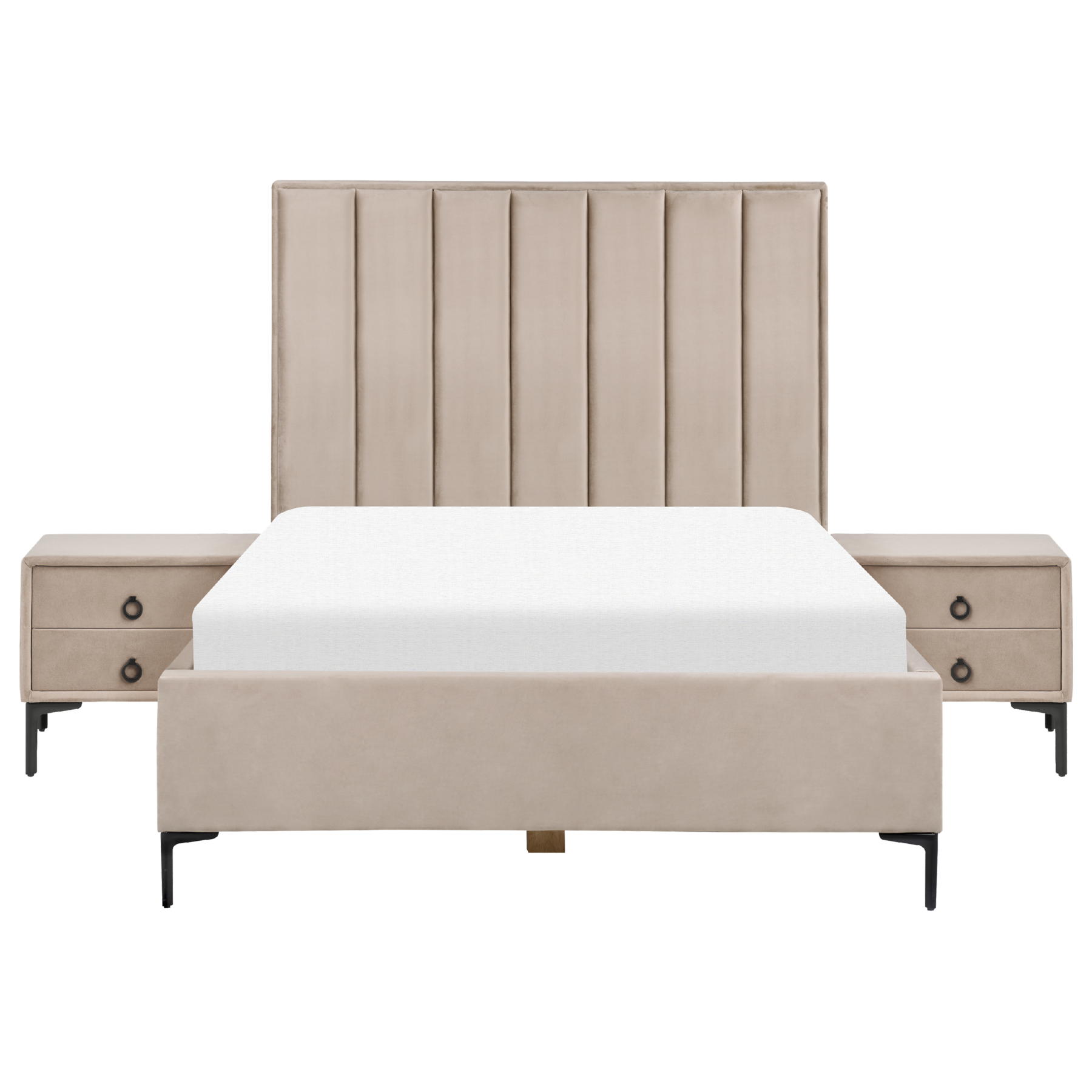 Beliani - SEZANNE - Slaapkamerset - Taupe - 140 x 200 cm - Fluweel