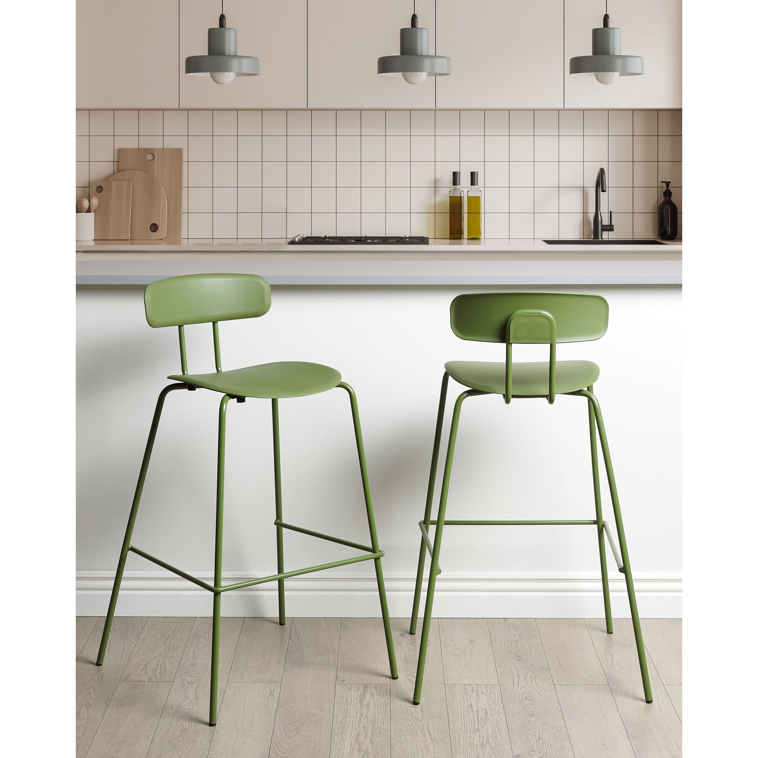 Beliani - SIBLEY - Barkruk set van 2 - Groen - Synthetisch materiaal