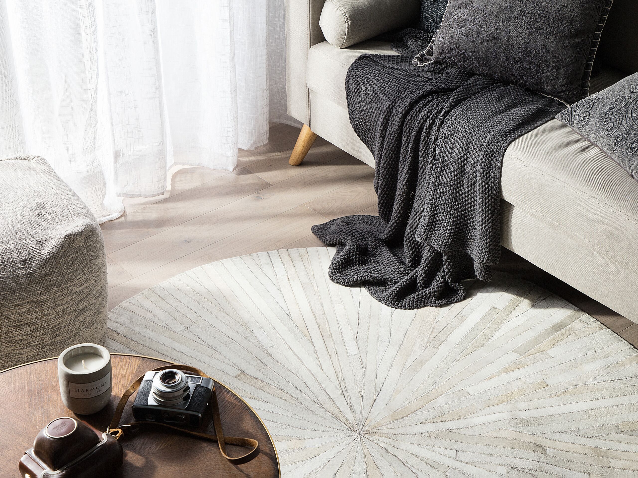 Beliani-SIMAV-Laagpolig vloerkleed-Wit-140 cm-Koeienhuid leer