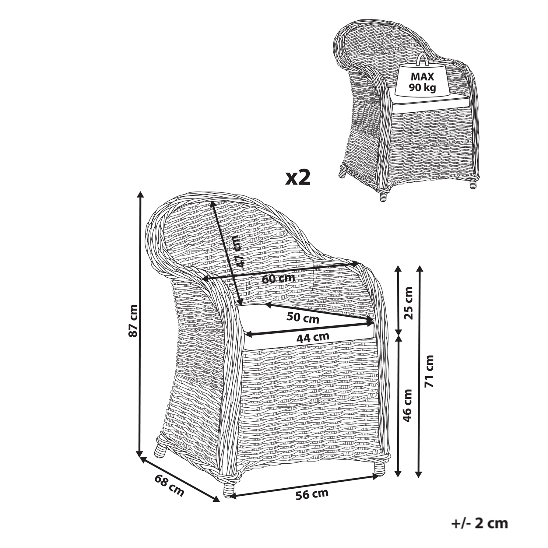 | Maximale draagkracht | 90 kg |
