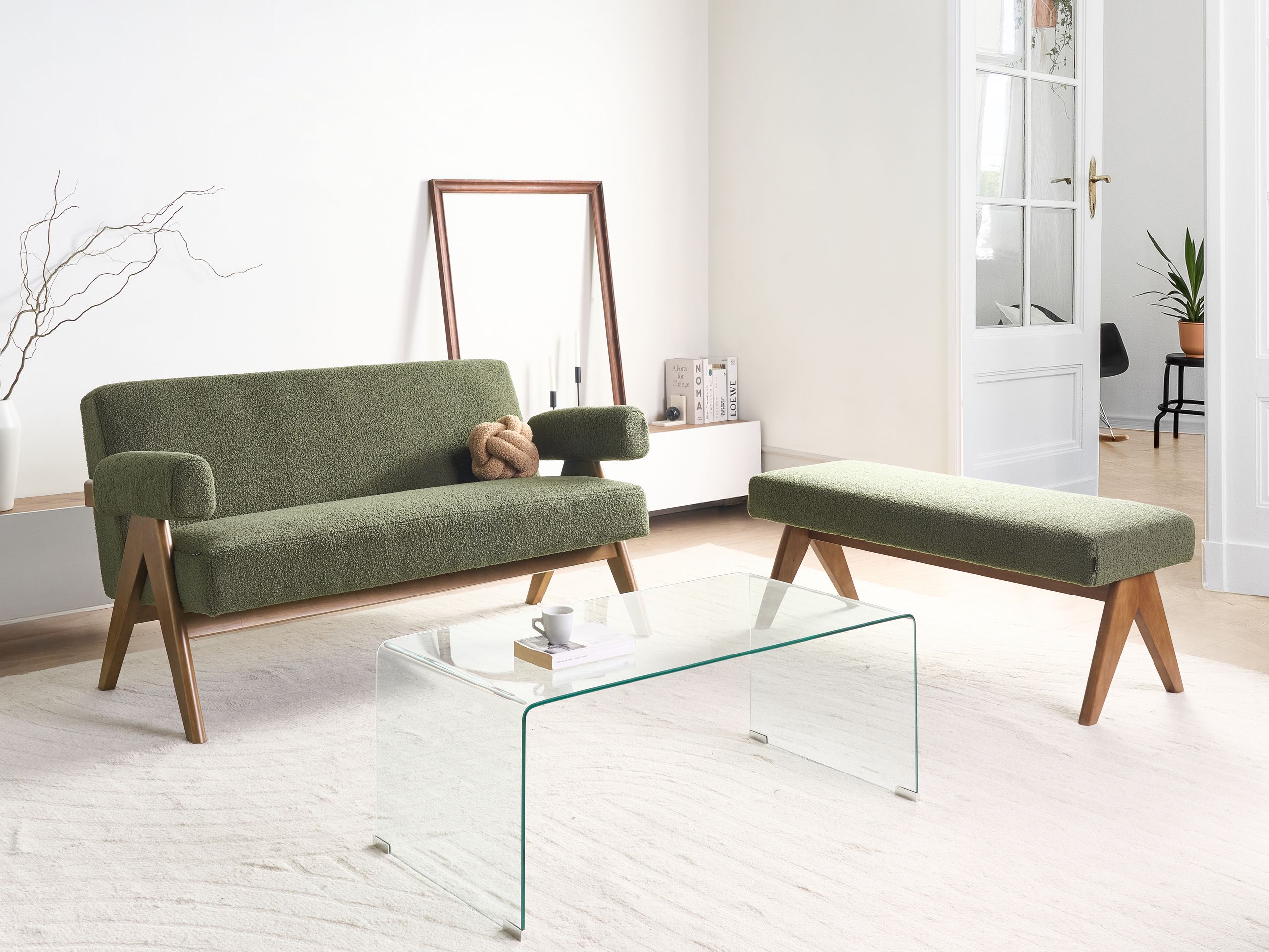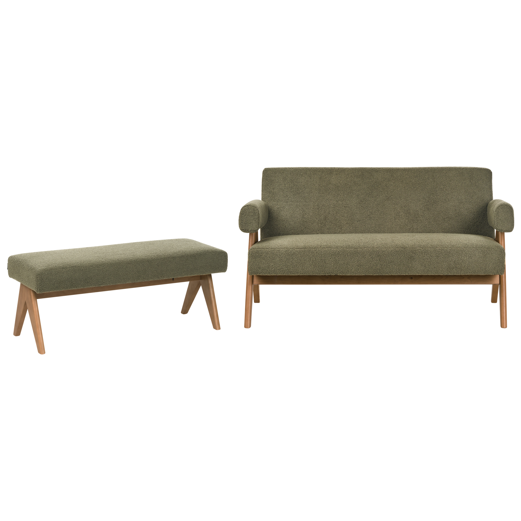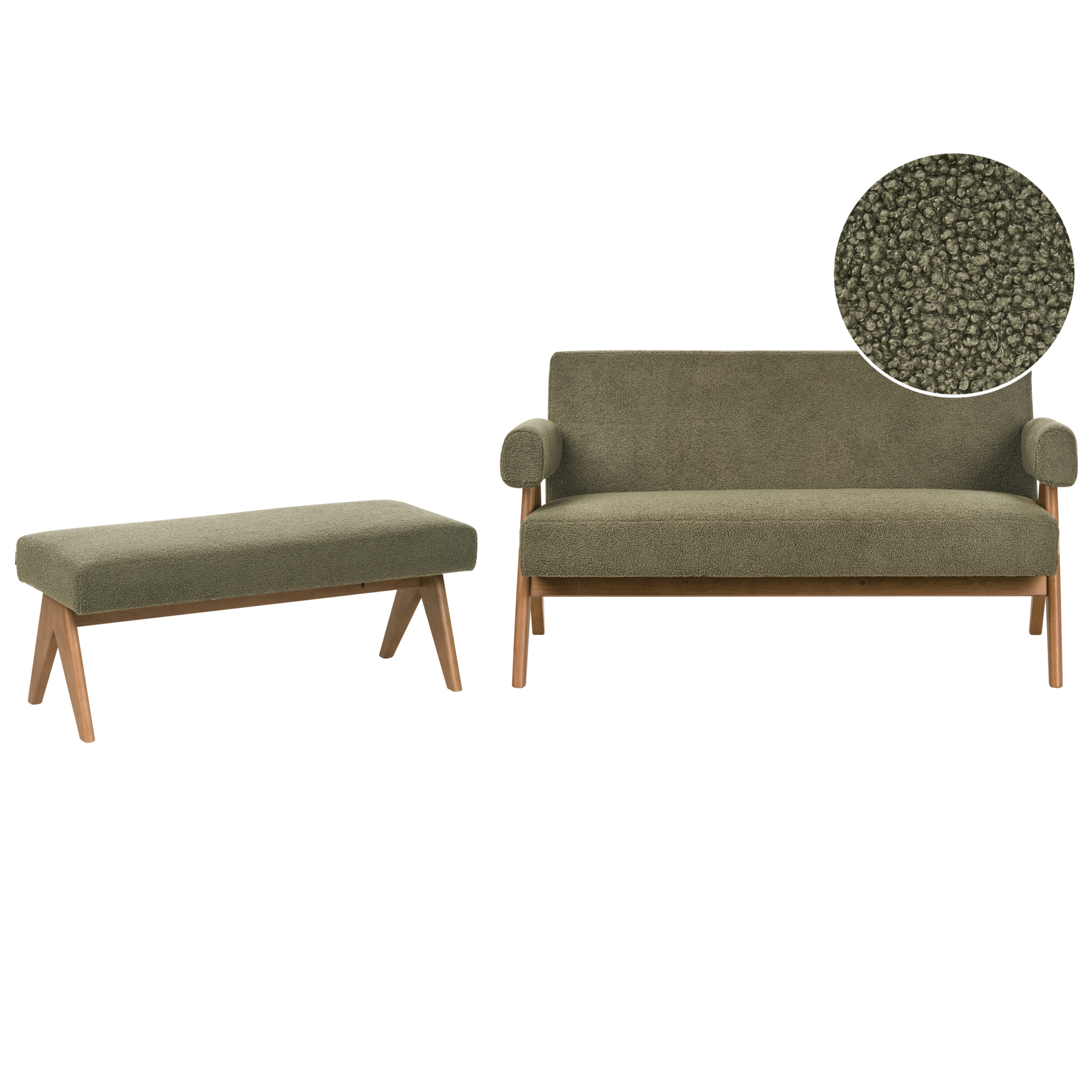 Beliani - TAMRE - Bankenset - Groen|Donkerbruin - Bouclé