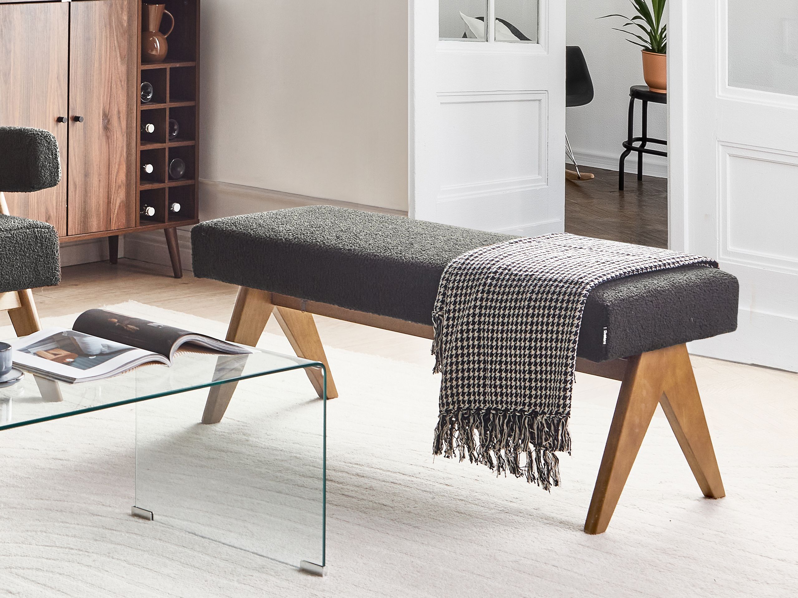 Beliani - TAMRE - Bankje - Zwart|Donkerbruin - Bouclé