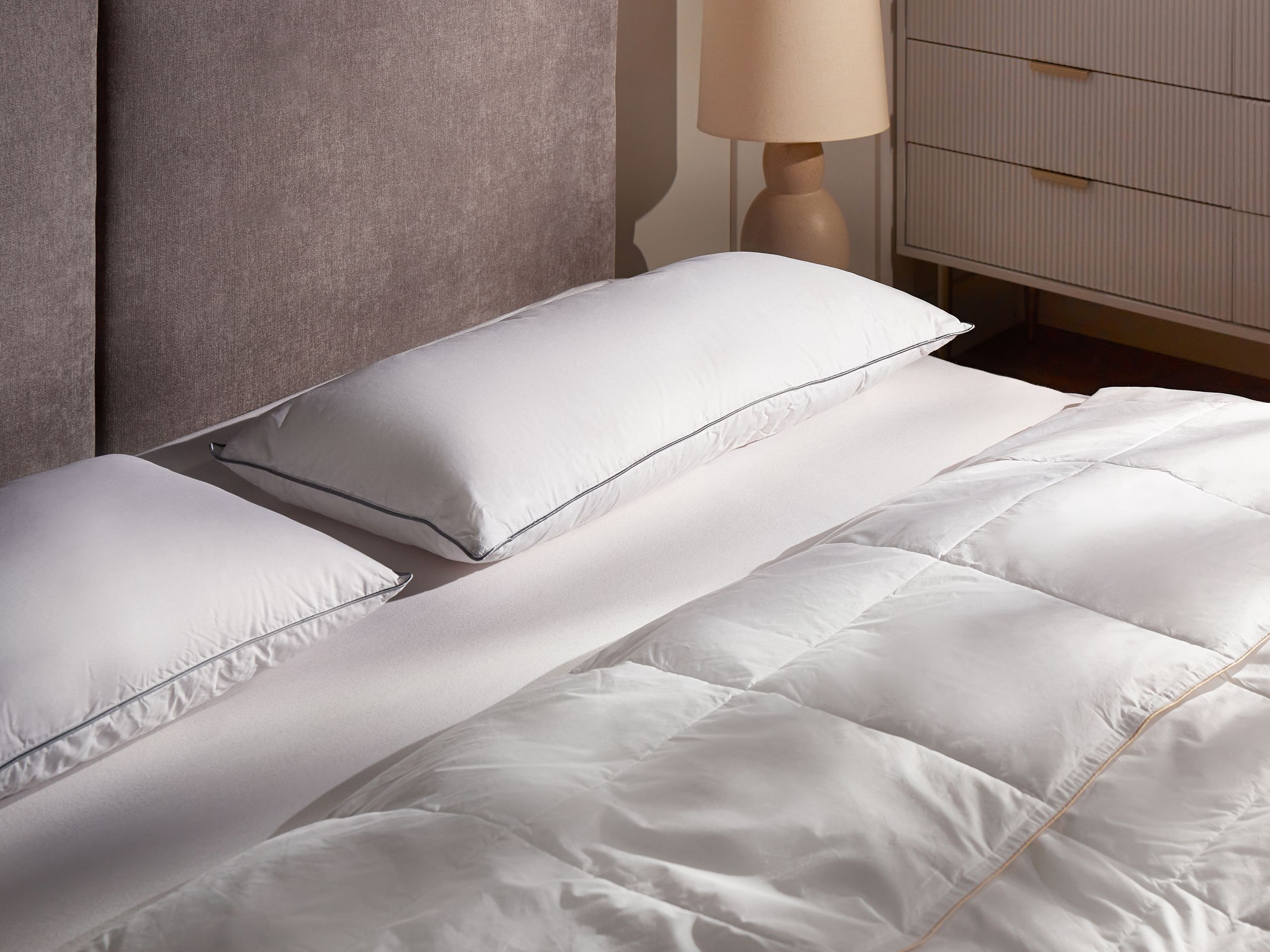 Beliani-TEIDE-Hoofdkussen 3 vakken-Wit-40 x 80 cm-Laag-Eendenveren