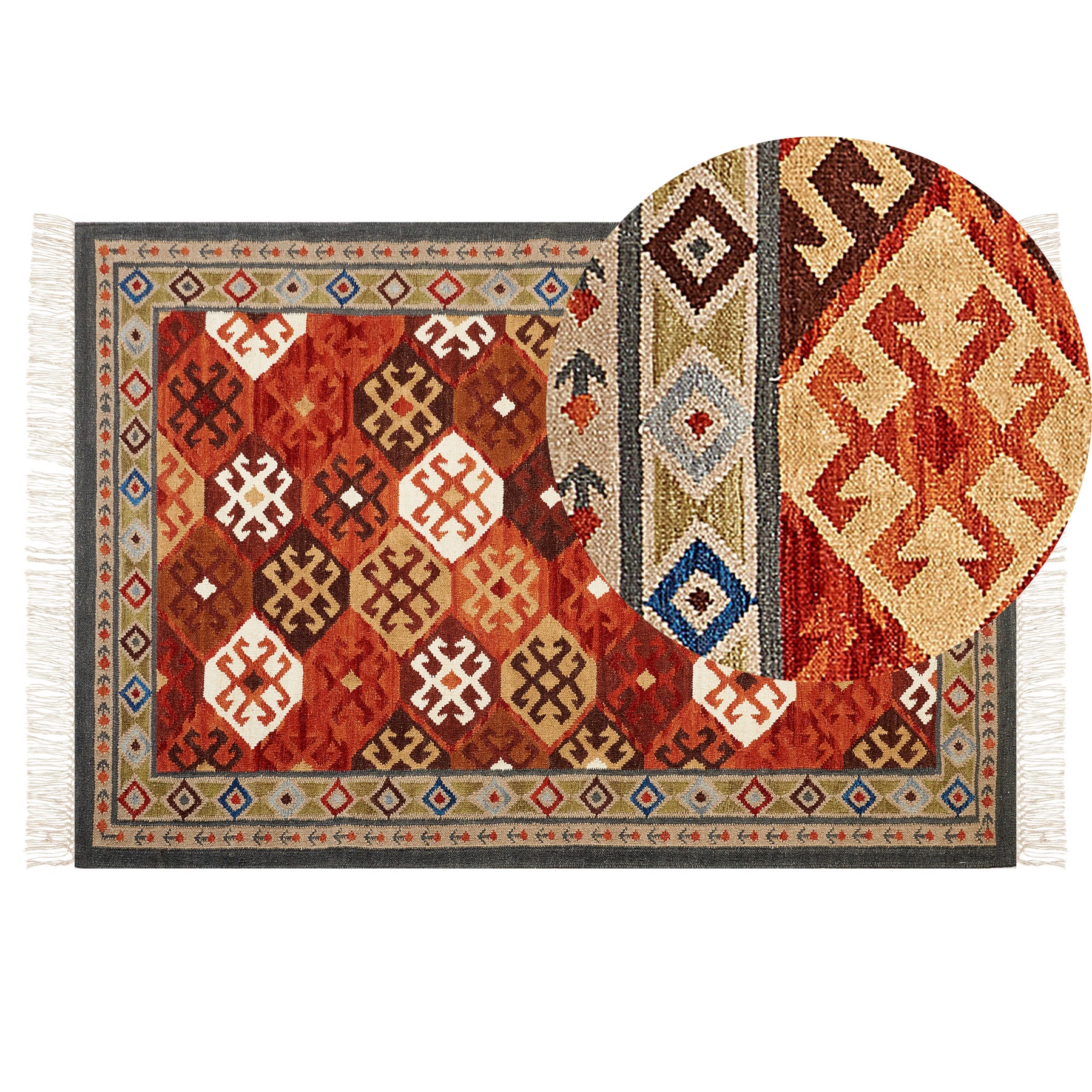 Beliani-URTSADZOR-Kelim vloerkleed-Multicolor-140 x 200 cm-Wol