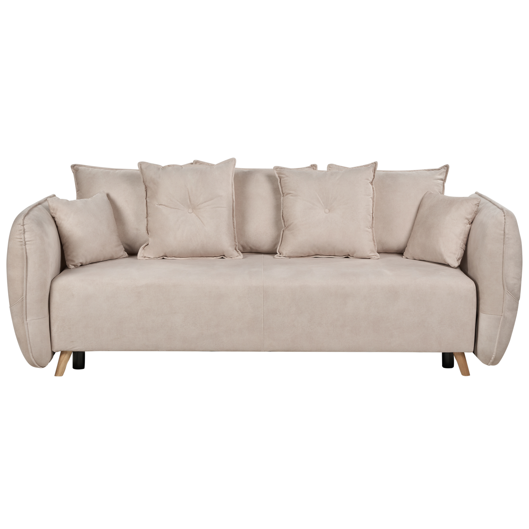 Beliani - VALLANES - Slaapbank met opbergruimte - Lichtbeige - Fluweel