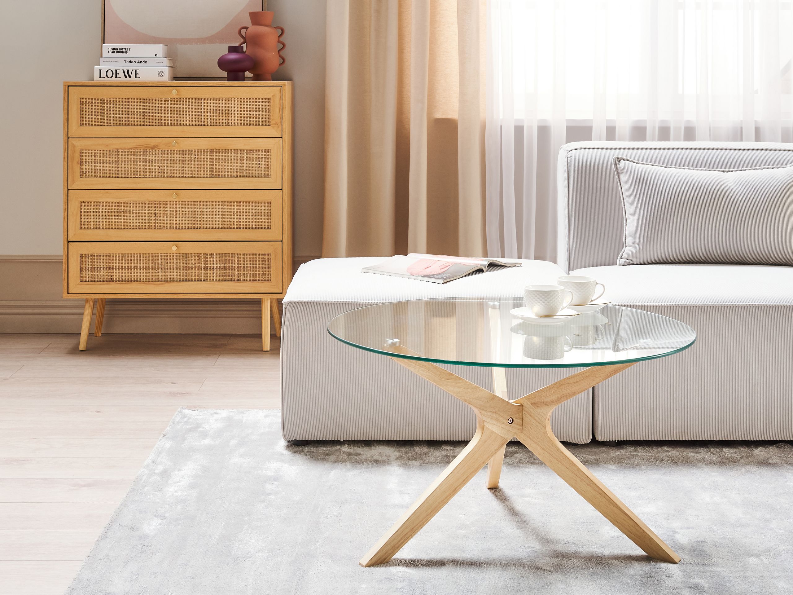 Beliani - VALLEY - Salontafel - Lichthout - Veiligheidsglas