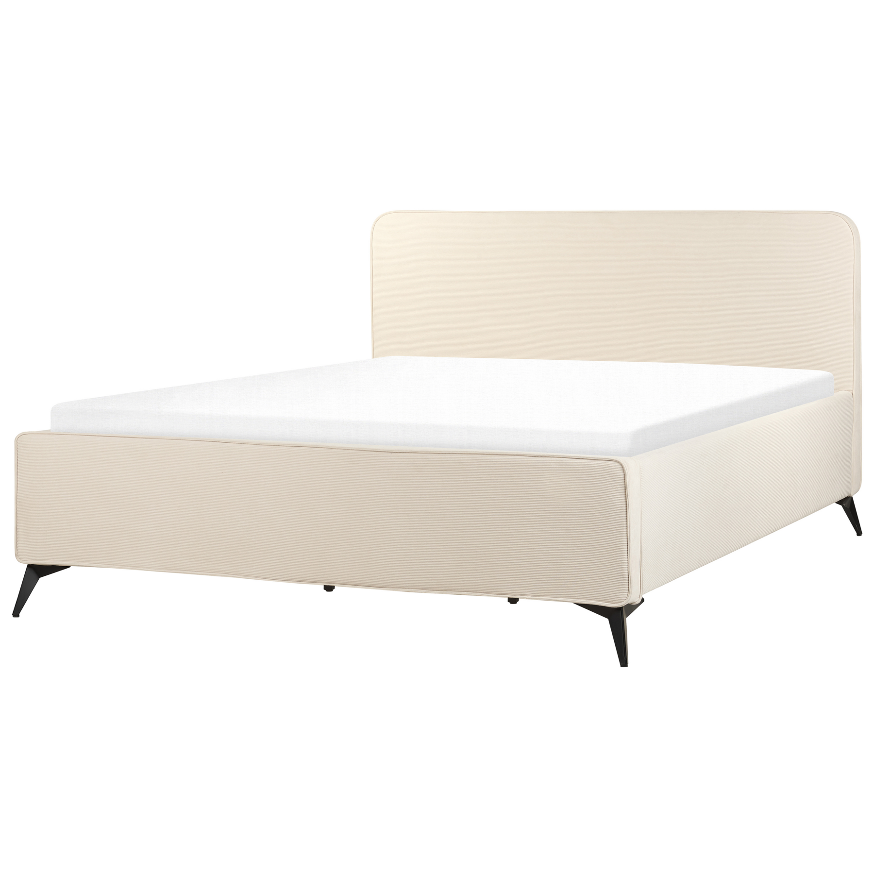 Beliani-VALOGNES-Tweepersoonsbed-Lichtbeige-180 x 200 cm-Corduroy