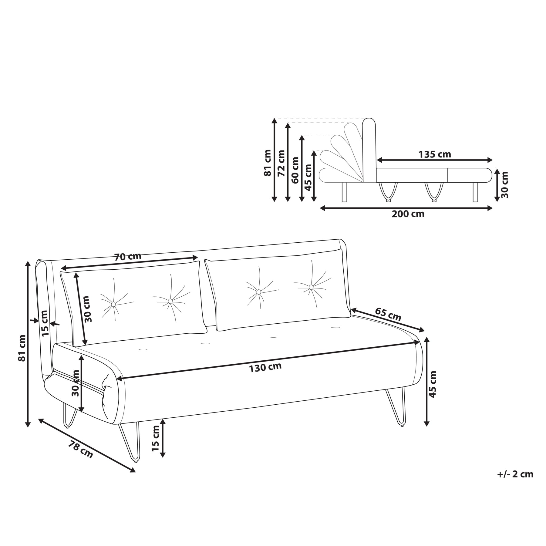 - Zeer gemakkelijk te veranderen in een bed