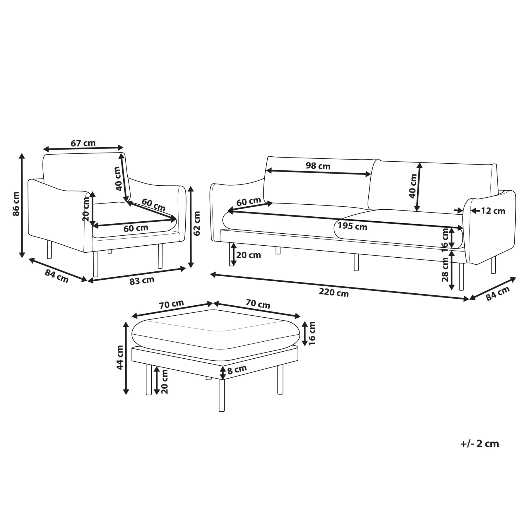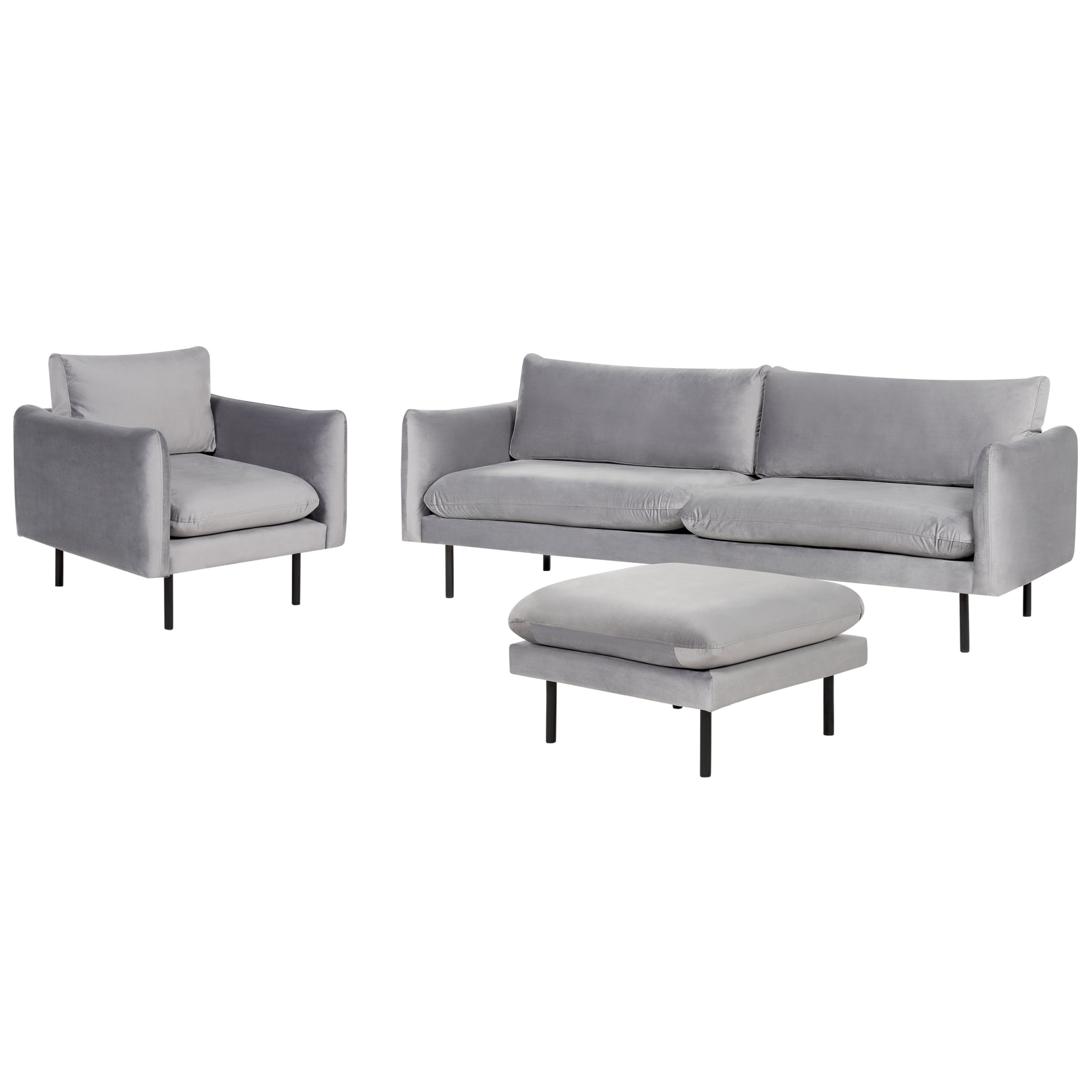 Beliani - VINTERBRO - Bankenset met ottomaan - Grijs - Fluweel