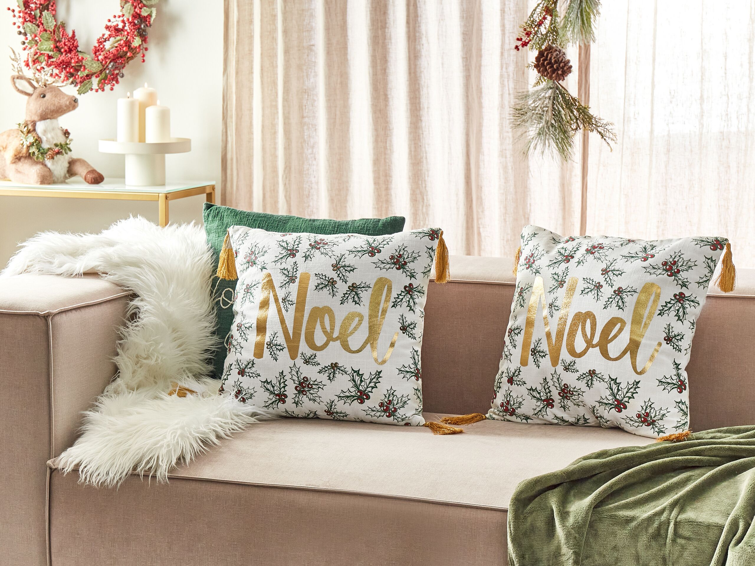 Beliani - ZAMIA - Sierkussen set van 2 - Wit|Goud - Katoen
