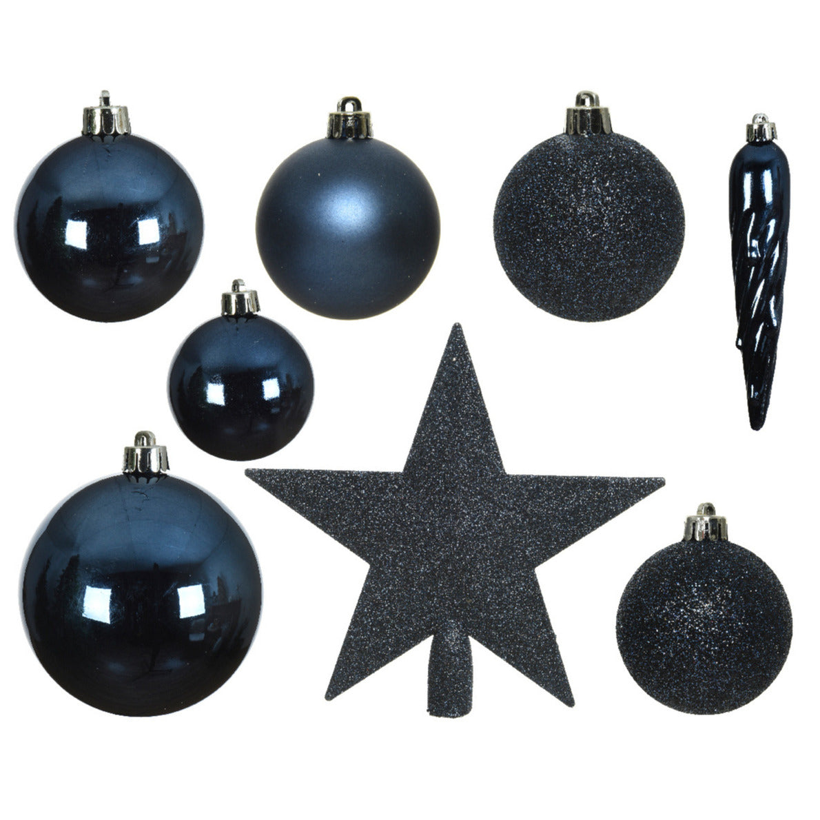 Bellatio decorations Kerstballen - 33x - donkerblauw - met piek