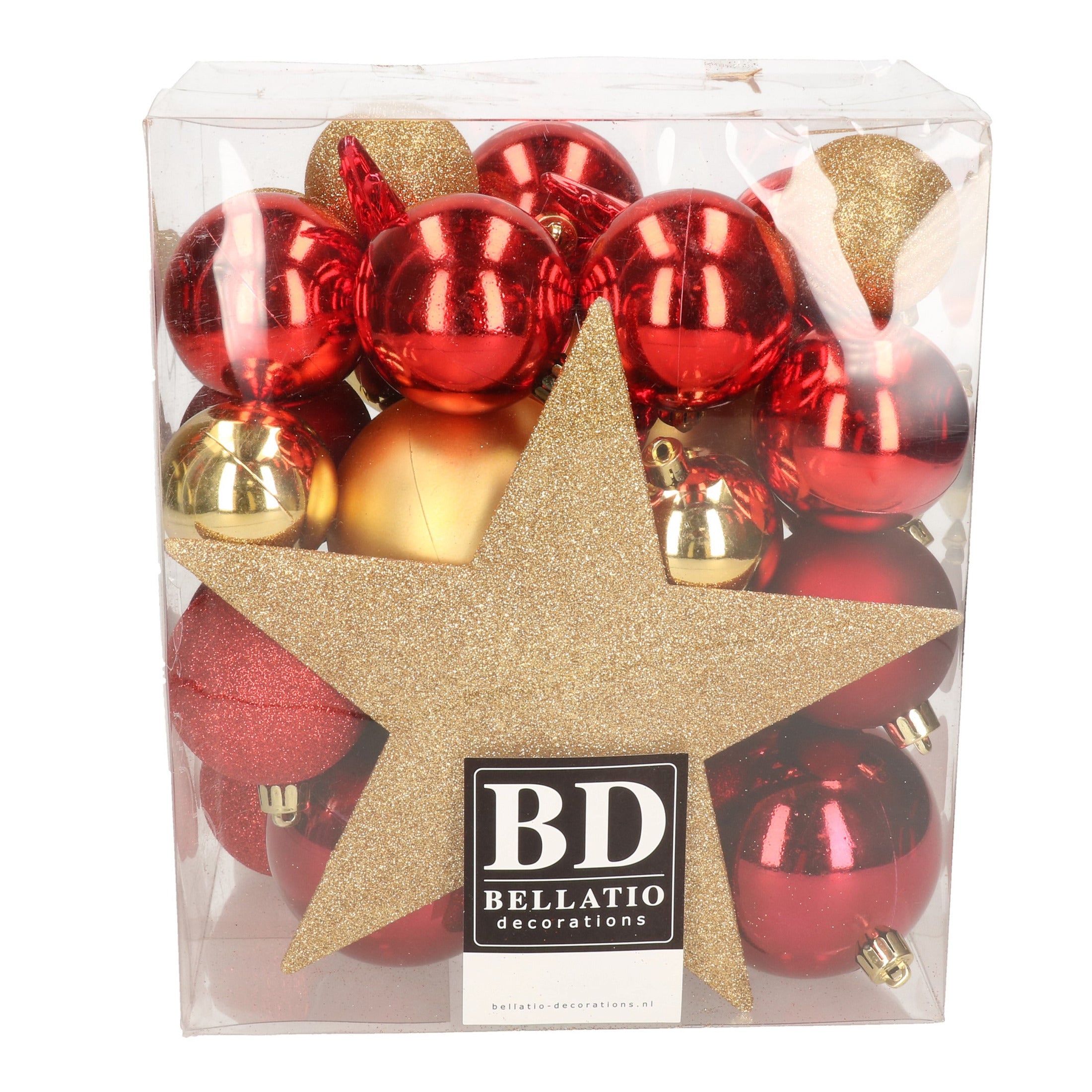 Bellatio Decorations kerstballen - 34-dlg - goud|rood - kunststof