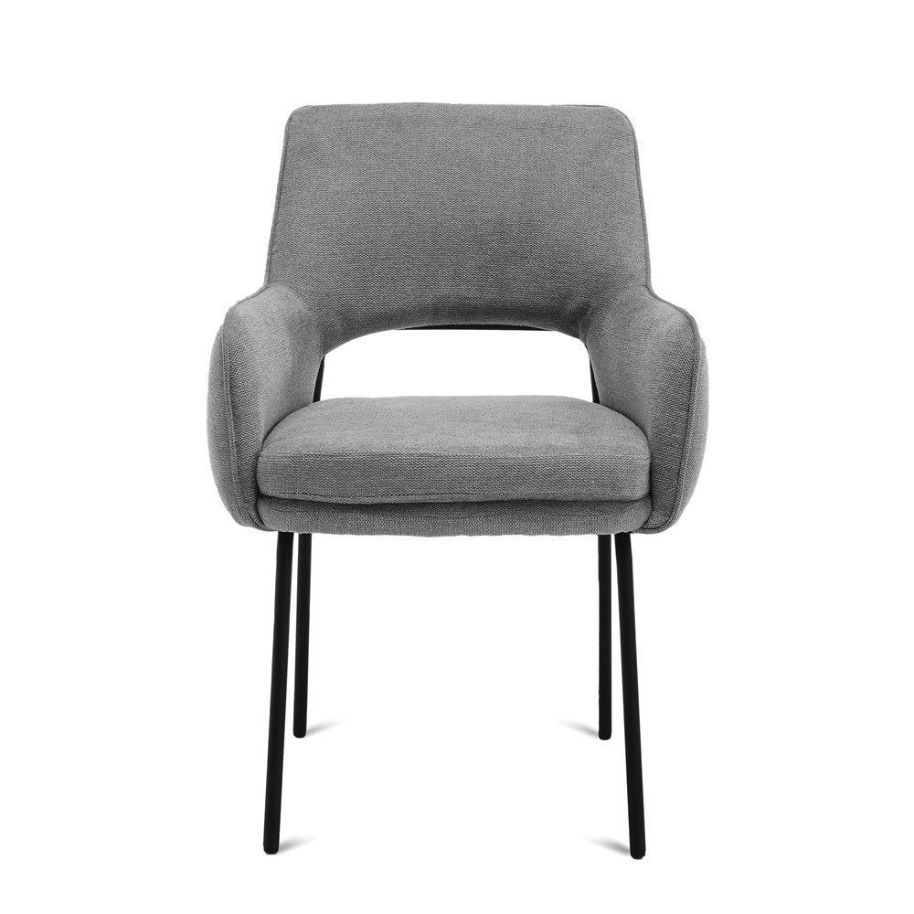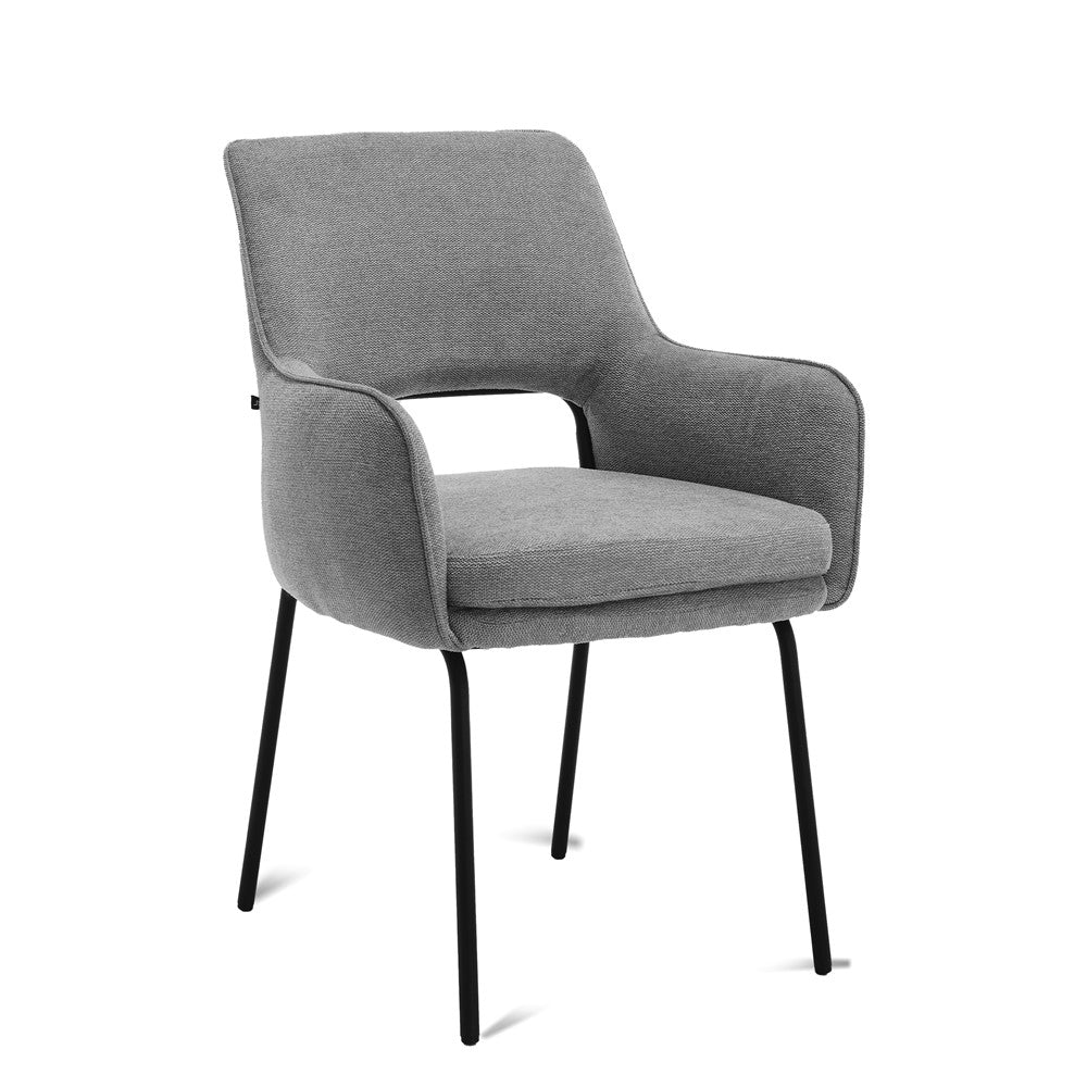 De Aiden stoel biedt een zacht en comfortabel zitoppervlak dankzij de hoogwaardige bekleding in de kleur Cairo Grijs. Het ergonomische ontwerp zorgt voor optimaal zitcomfort, waardoor het ideaal is voor lange diners of werkuren.