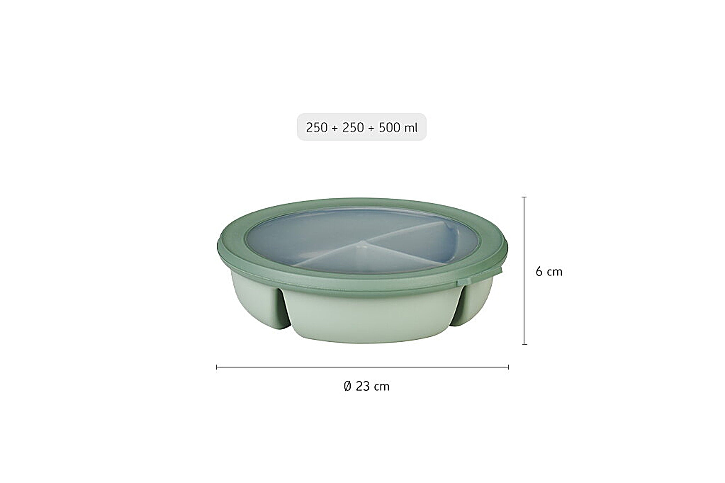 De bento bowl met drie vakken en een inhoud van 250 + 250 + 500 ml is ideaal om de verschillende ingrediënten van een maaltijd apart van elkaar te bewaren. De roze multikom heeft drie vakken, waarin de hoofdingrediënten van een typisch Hollands gerecht, zoals aardappelen, groenten en vlees, maar ook een Indische curry met rijst en groenten en saus gescheiden blijven. Deze schaal is perfect voor het bewaren en serveren van groente snacks met een dip of gebruikt worden als pokebowl. De bento bowl Cirqula is de ideale meal prepper. De voorbereide gerechten kunnen in de bowl met drie vakken direct uit de koelkast of vriezer (zonder deksel) in de magnetron opgewarmd worden. De bowl kan na gebruik in de vaatwasser gereinigd worden. De magnetronbestendige schaal is gemaakt van sterk materiaal en heeft een transparante deksel, zodat je altijd kunt zien wat er in de schaal zit. Met de deksel sluit je de schalen met drie vakken wordt lekdicht, lucht- en aromadicht af, waardoor de gerechten lekker lang vers blijven. Je neemt ze gemakkelijk mee voor onderweg. Extra tip: gebruik de bento bowl ook voor een gezellig hapje en drankje met vrienden of tijdens een picknick als snackschaal, gevuld met chips, dips en andere lekkernijen.