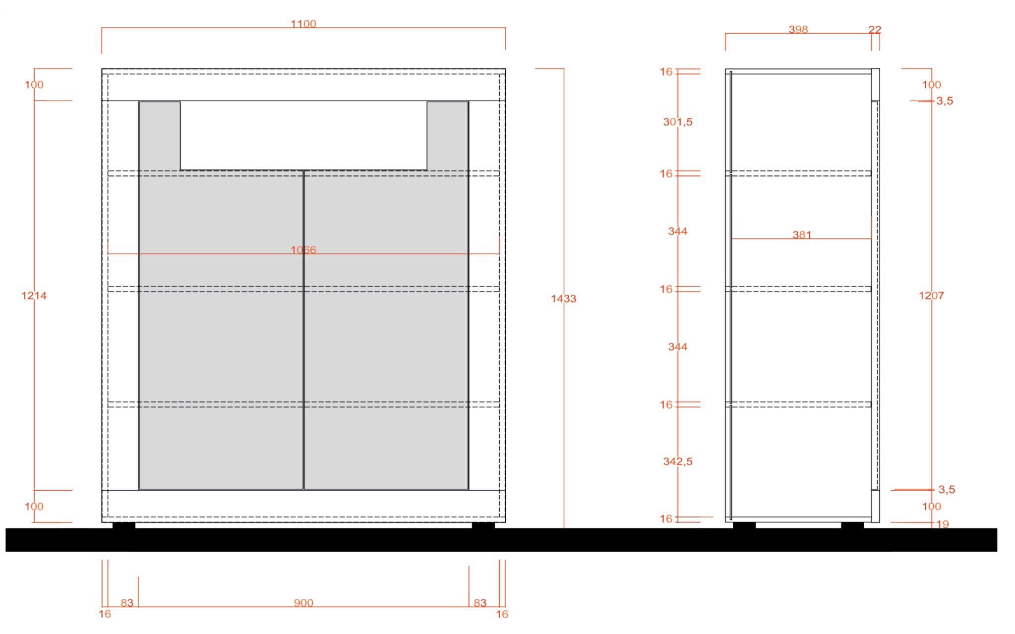 | Maat | B110, D42, H144 cm |