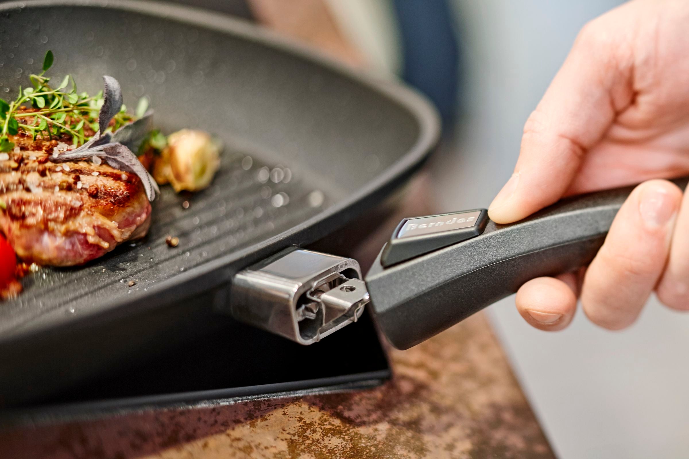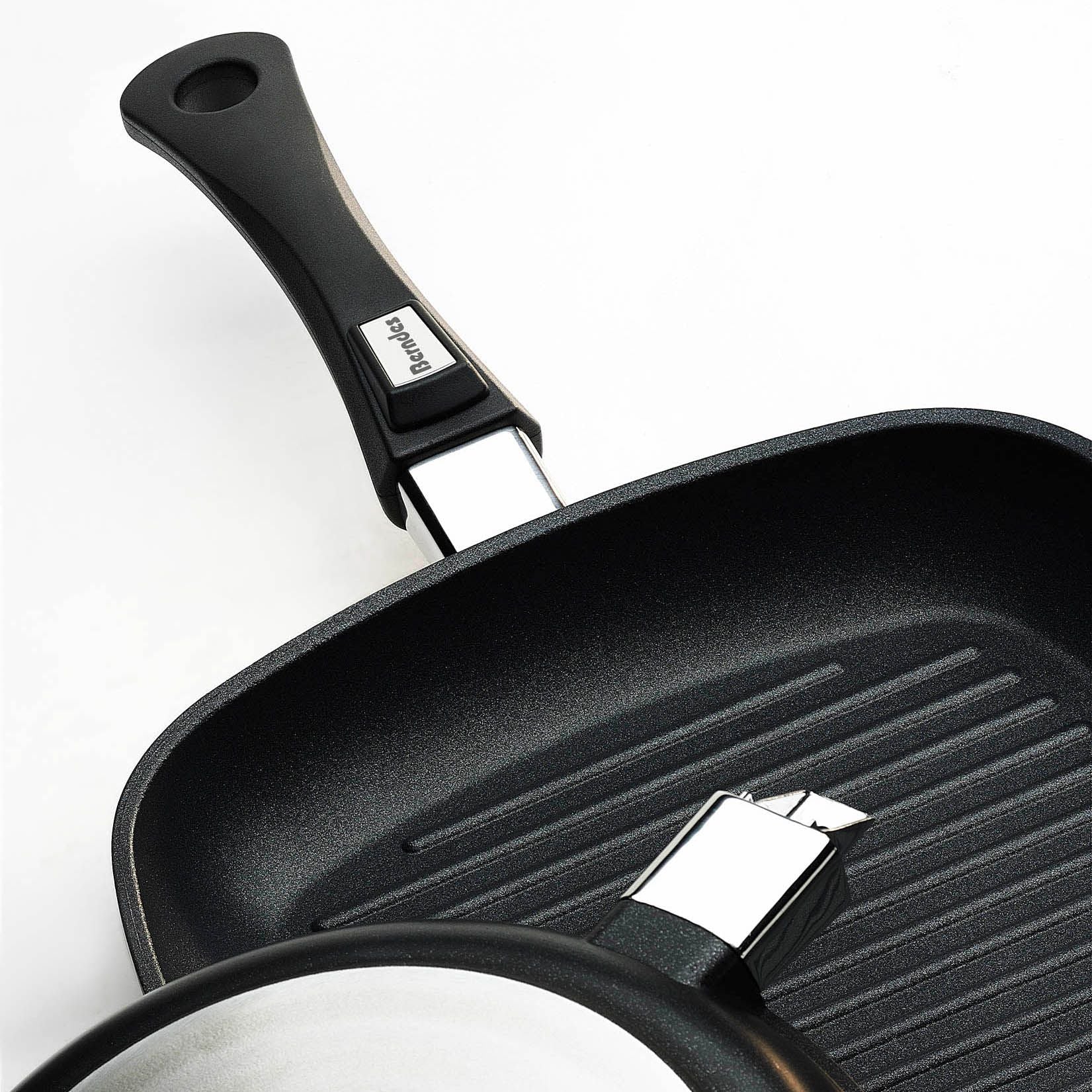 Door de verhoogde randjes in de pan krijgt het vlees de echte uitstraling van een gegrild stukje vlees of vis. De Grillpan heeft een afmeting van 30cm x 30 cm en heeft een 5 cm hoge rand. Berndes heeft de pannen gemaakt van een hoogwaardige kwaliteit gegoten aluminium. De anti aanbak laag is 100% PFOA vrij en heeft heel weinig vetstof nodig tijdens het bakken. De pannen hebben een afneembare greep. Door een makkelijk kliksysteem haal je de steel van de pan zodat de pan ook in de oven past en de pan weinig ruimte in beslag bij het opbergen. Berndes adviseert de pan schoon te maken met de hand afwas.Berndes is een Duits bedrijf dat sinds 1921 bestaat. Berndes kan zich berusten op een rijke traditie. Als pionier en innovator ligt de focus op kwaliteitsproducten, gewaardeerd door consumenten over de gehele wereld. En dat al voor meer dan 90 jaar. Het feit dat de producten ontworpen en geproduceerd worden in Duitsland is de basis voor het vertrouwen van de kwaliteit. Als innovators op het gebied van potten en pannen, is Berndes de uitvinder van gegoten aluminium pannen met een “non stick” coating. Dat maakt deze pannen zeer stabiel, licht van gewicht in gebruik met een perfecte warmtegeleiding. Daardoor hebben de meesten pannen van Berndes het predicaat “energiezuinig” ontvangen. Door de speciale productiemethode van de magnetische bodem, zijn deze pannen geschikt voor afwisseling tussen alle warmtebronnen. Berndes heeft verschillende lijnen met potten en pannen ontworpen, om te voldoen aan de wensen van de professionele chef tot en met de hobby kok. Met deze ervaring, de beste materialen, het mooiste ontwerp, ondersteunen ze de liefde voor ongekende kwaliteit en lekker koken. Immers, liefde is het belangrijkste ingrediënt voor een perfecte maaltijd.