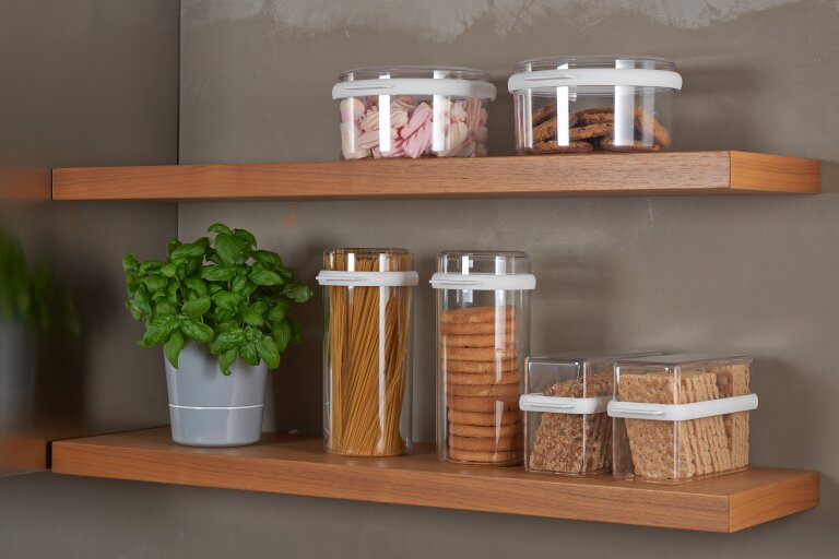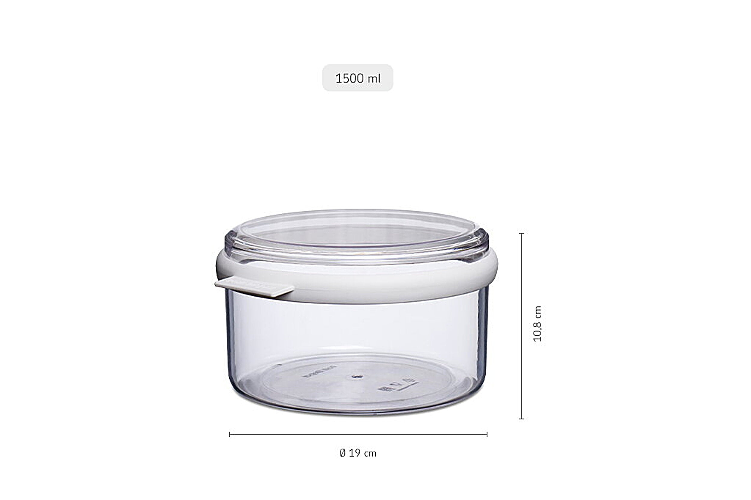 Bewaardoos Stora rond 1.5 liter met witte ring. In de keuken wordt niet alleen maar gekookt en gewerkt, het is ook steeds meer een plek waar ontspannen wordt geleefd. Deze ronde Stora opbergdoos van Mepal is een mooi product en past in de gezellige hedendaagse keuken. De ronde Stora doos met een inhoud van 1.5 liter is doorzichtig en geeft direct zicht op inhoud. De witte afdichtring zorgt voor een luchtdichte afsluiting, waardoor deze grote voorraaddoos geschikt is voor het bewaren van droge etenswaren zoals noten, rijst, pasta of koekjes.