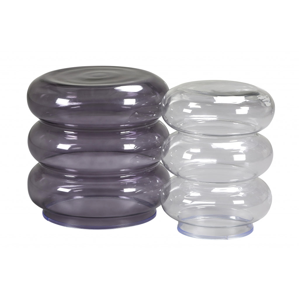 Bijzettafel Rosella is een ware blikvanger voor in huis. Deze prachtige en unieke tafel heeft een speelse macaronvorm, vervaardigd uit transparant zwart glas met een subtiele paarse zweem. Combineer Rosella met andere tafeltjes en poefjes, of geef hem een extra touch met een mooie plant of vaas. Een bijzettafel Rosella voegt stijlvolle flair toe aan ieder interieur! Goed om te weten: - Geheel van transparant zwart glas - Voorzien van vloerbescherming - Afmeting Ø38 cm en 38 cm hoog
