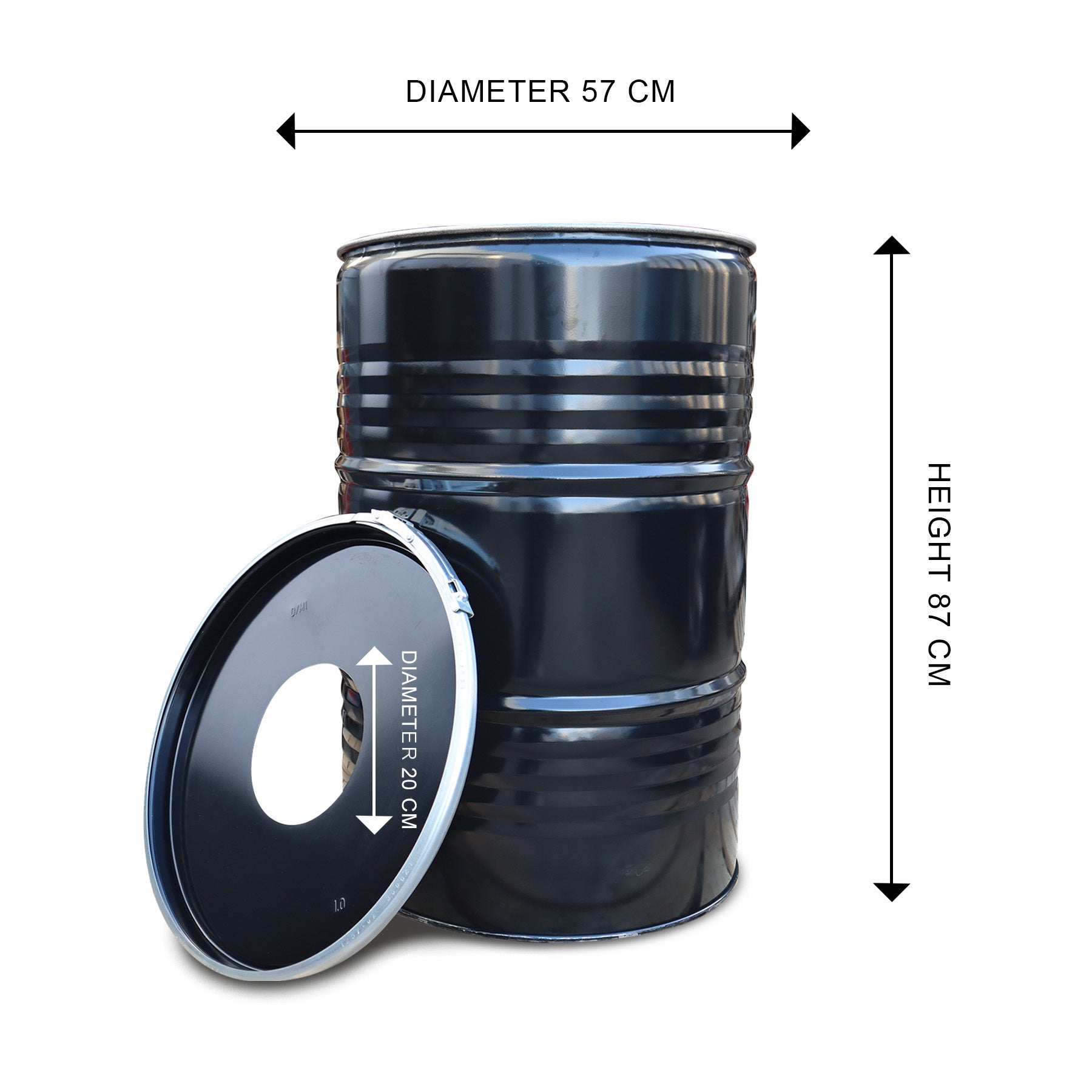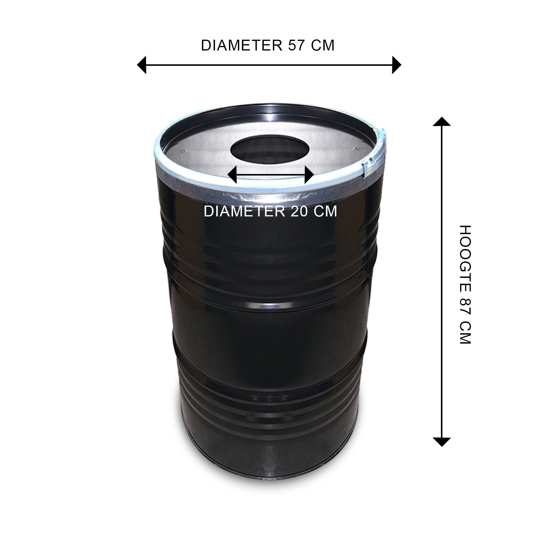 BinBin Hole Industriële prullenbak zwart 200 Liter met gat in deksel